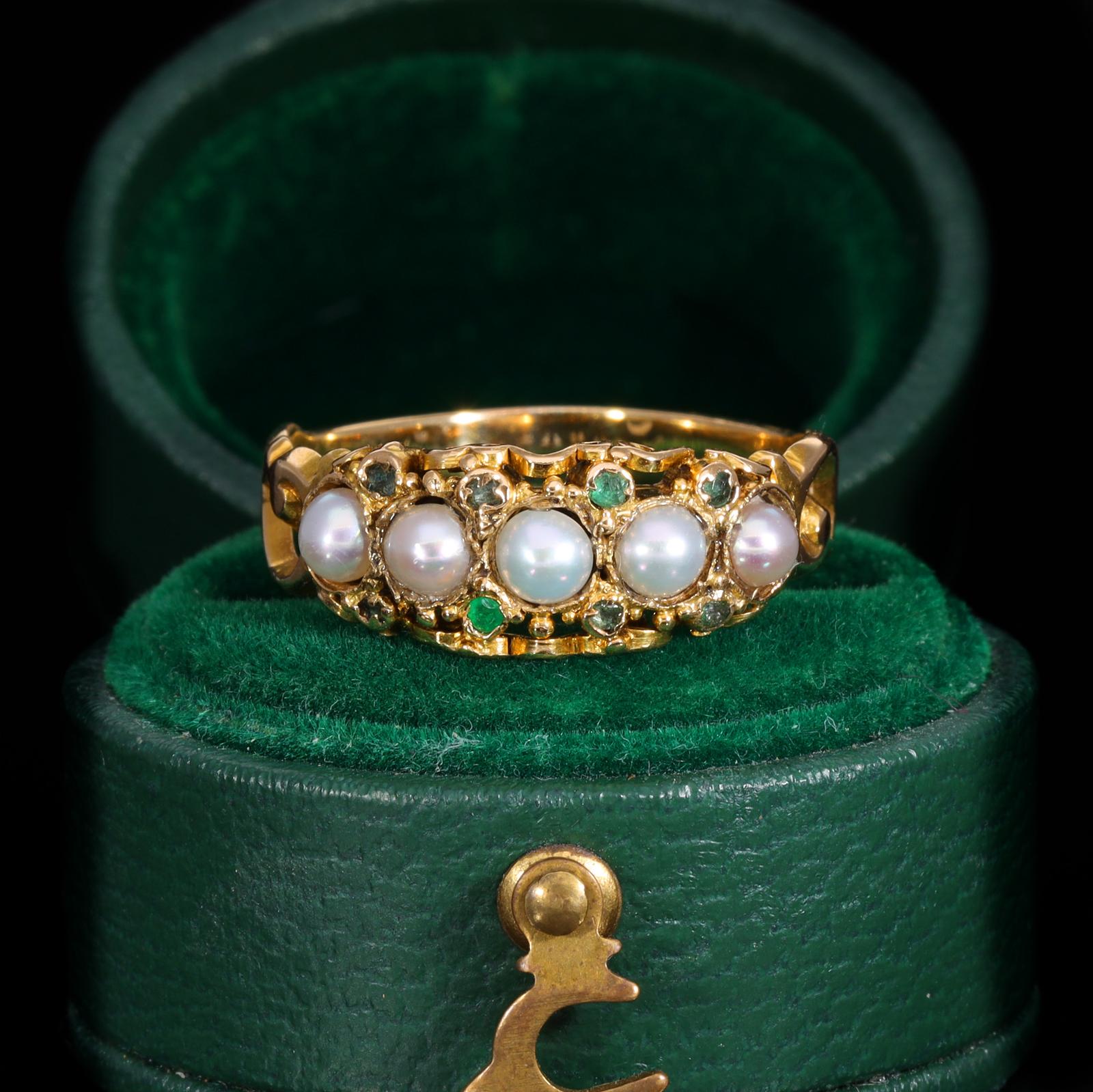 The Antique Victorian Pearl & Emerald Half Hoop Ring