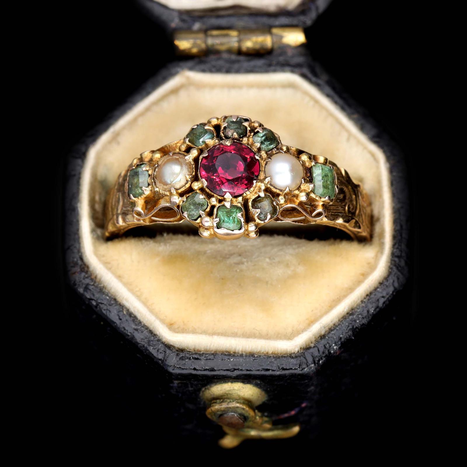 The Antique Victorian Ruby, Emerald & Pearl Cluster Ring
