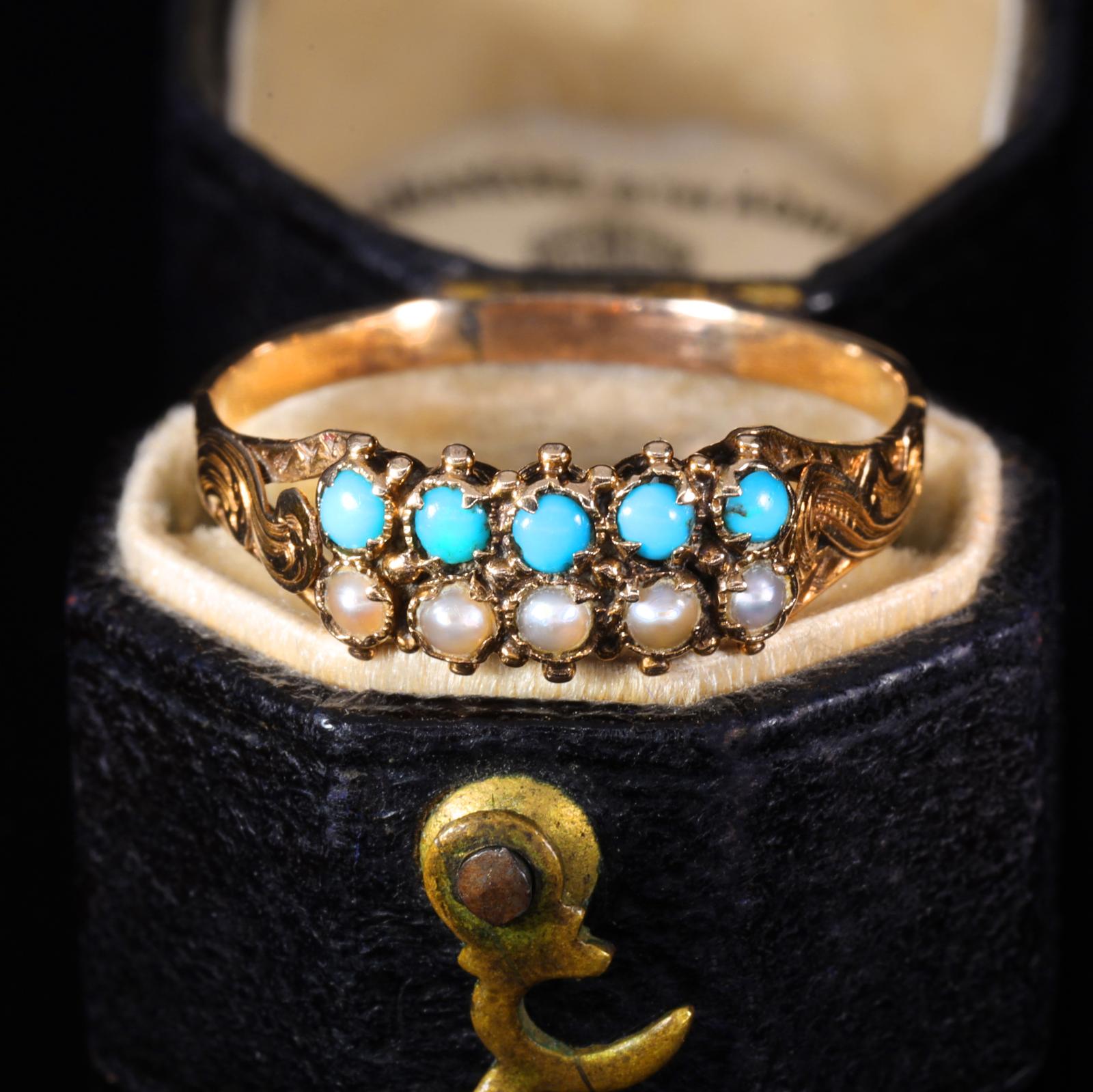 The Antique Victorian Turquoise and Pearl Double Row Ring