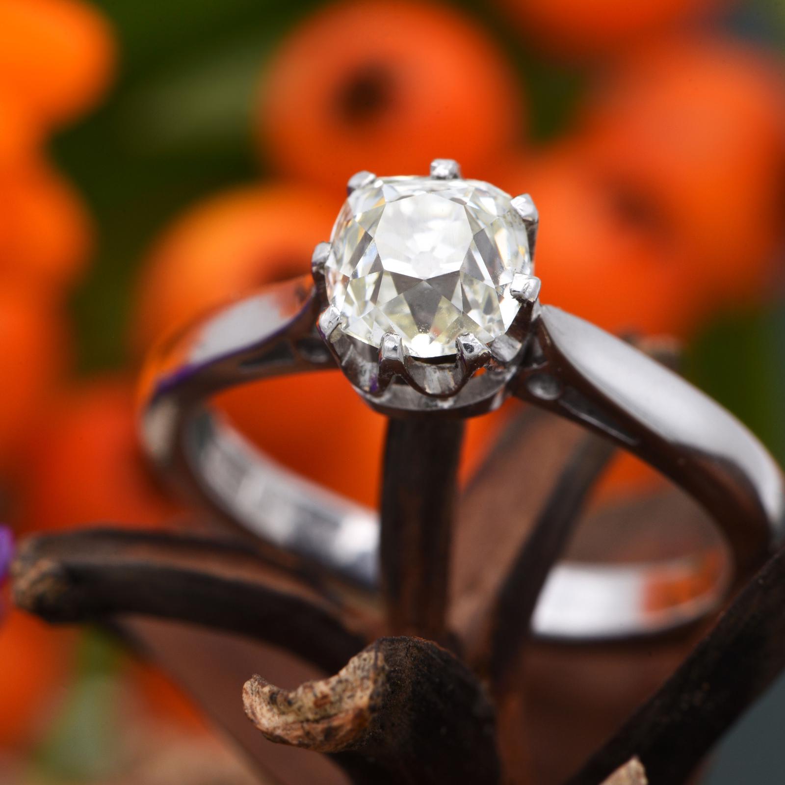 The Champagne 1.26ct Old European Cut Antique Solitaire White Gold Diamond Ring