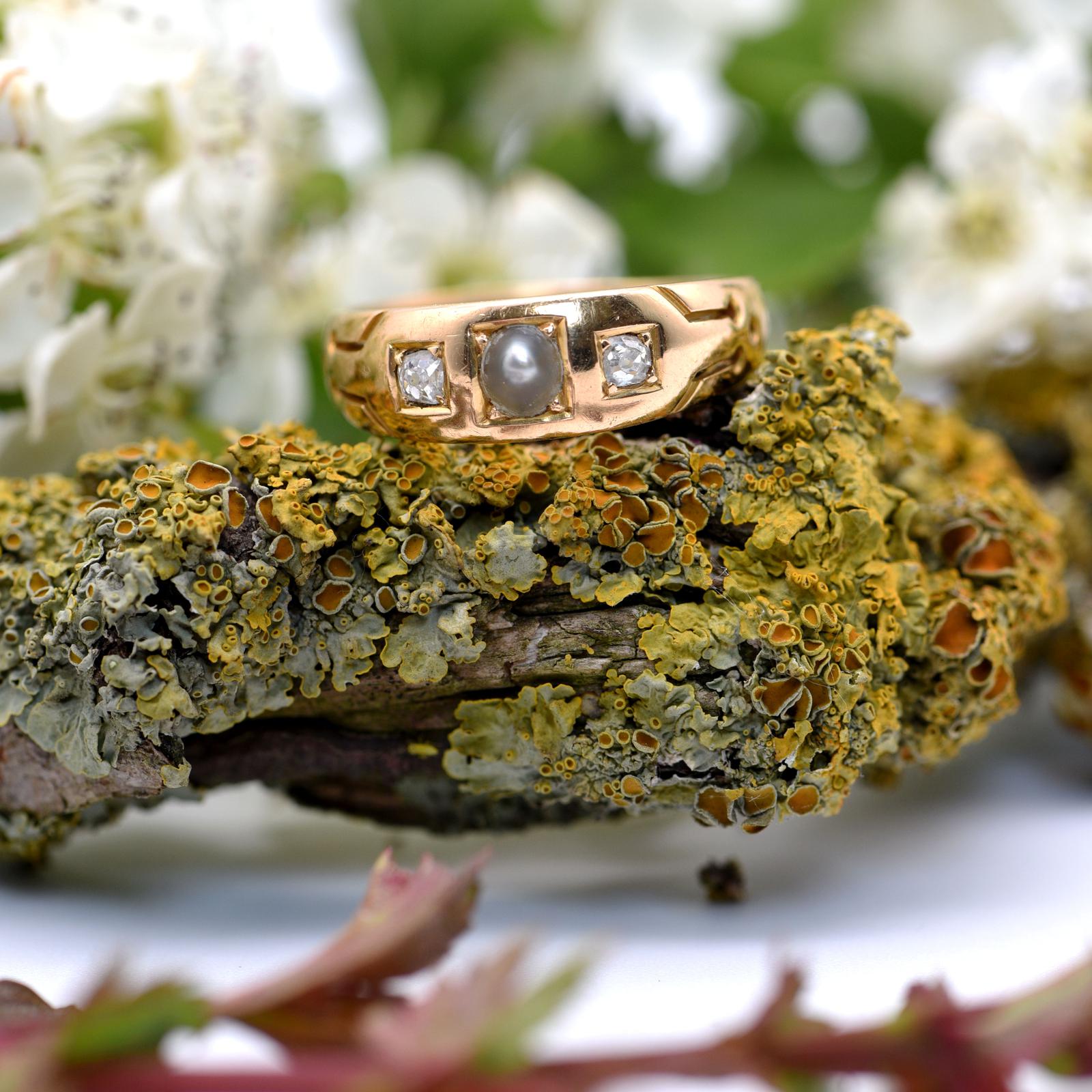 The Early 19th Century Engraved Diamond & Pearl Ring