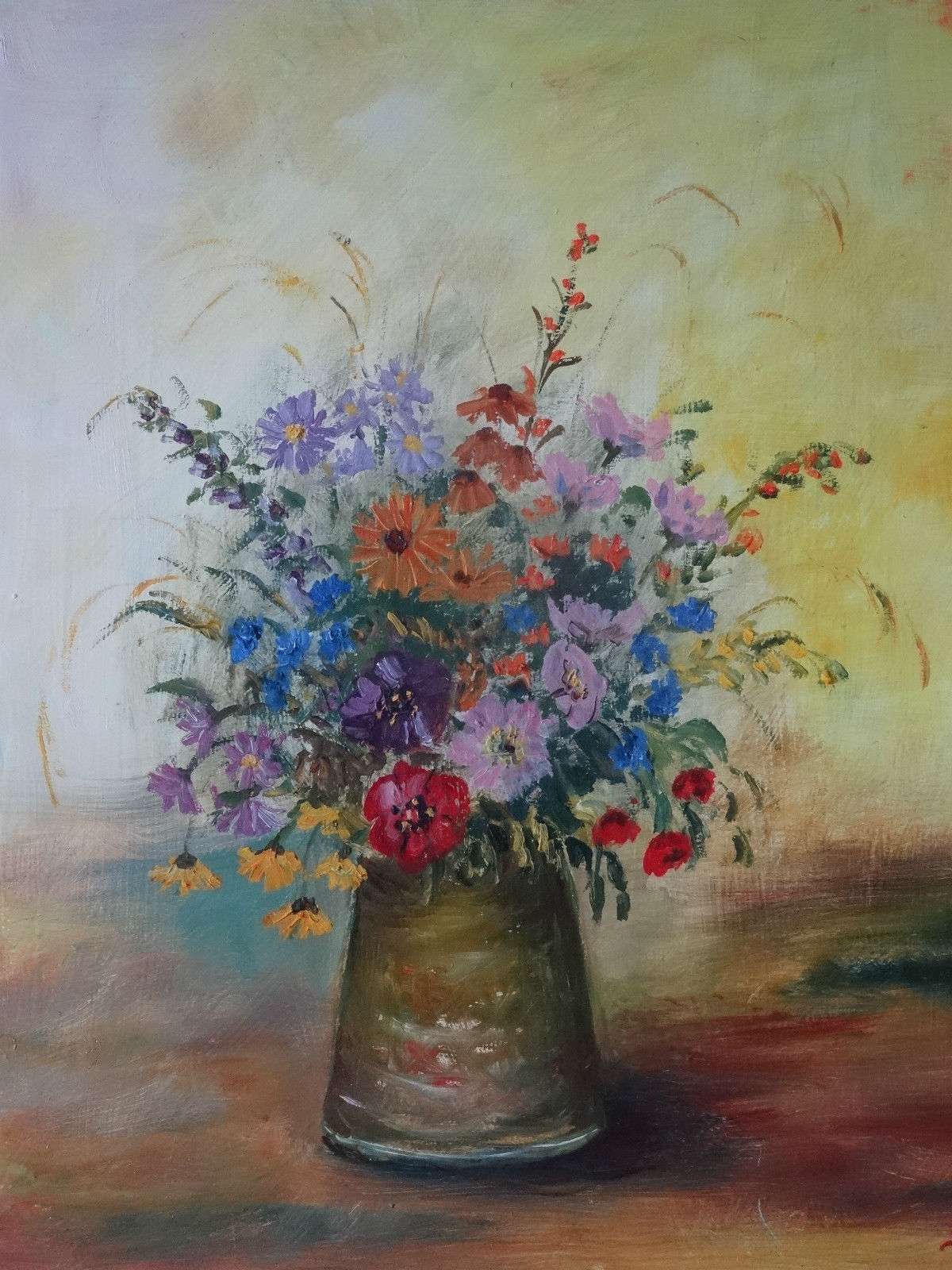 'The Flower Arrangement' Original Signed 1950s Still Life Oil on Board Painting