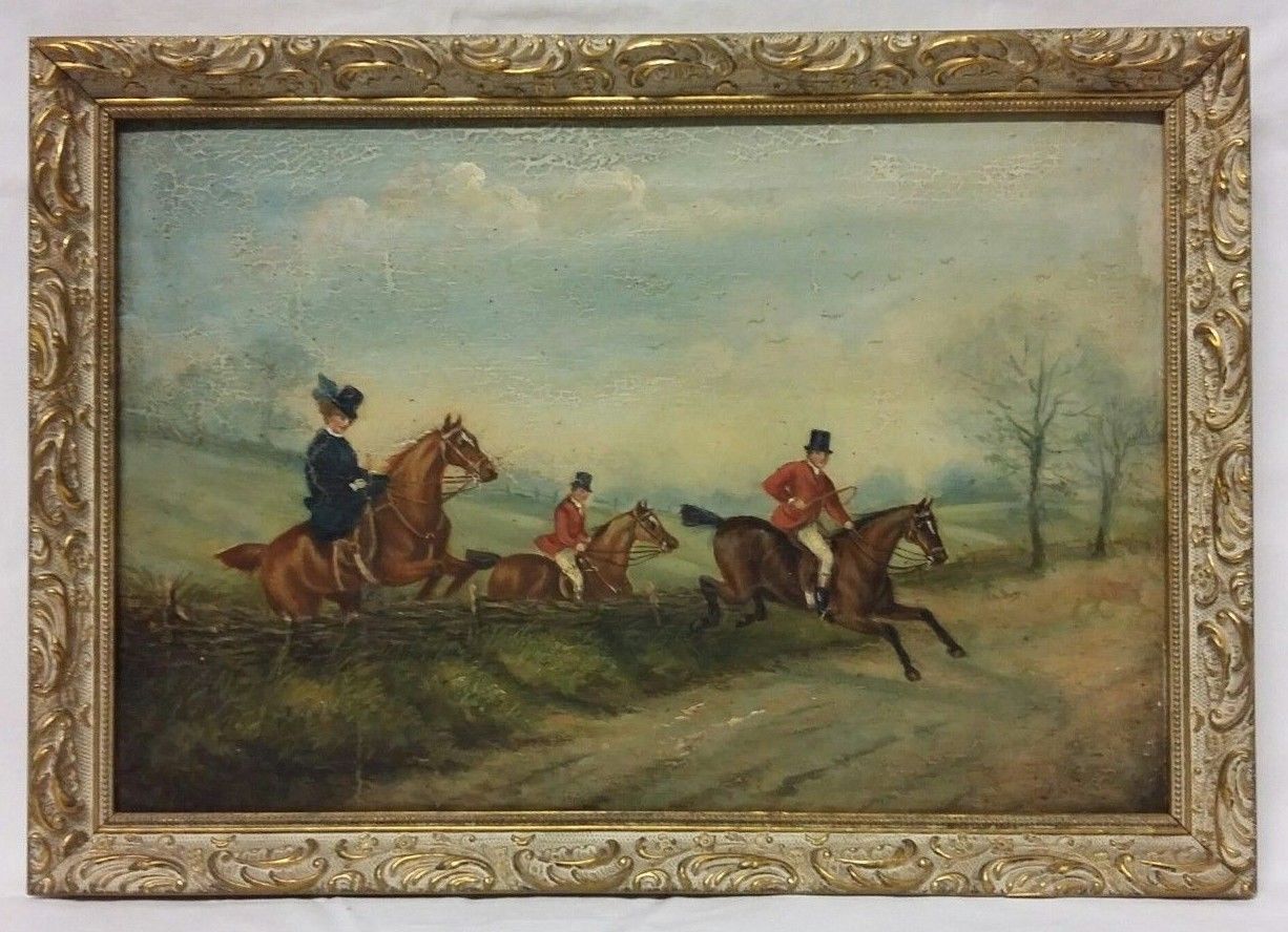 'the Hunt' An Enchanting Pair of Victorian Oil On Canvas Paintings of Hunting Scenes