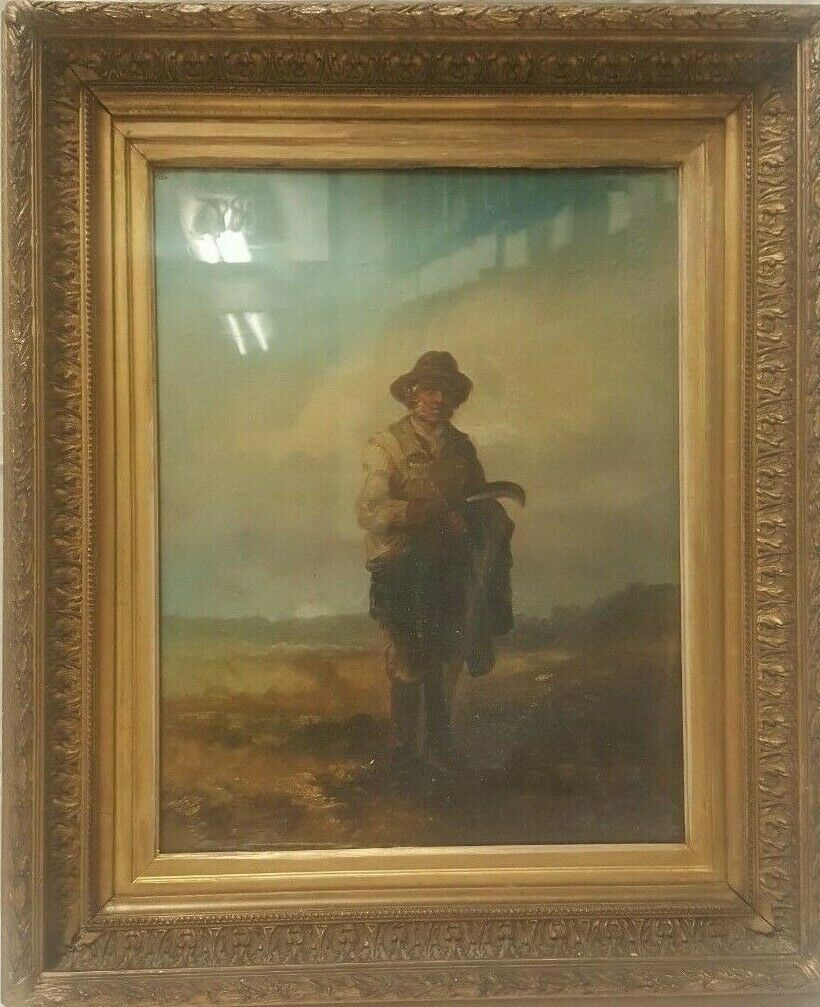 'the Hunter' a Glazed Victorian Oil On Canvas Painting Indistinctly Signed C.1850