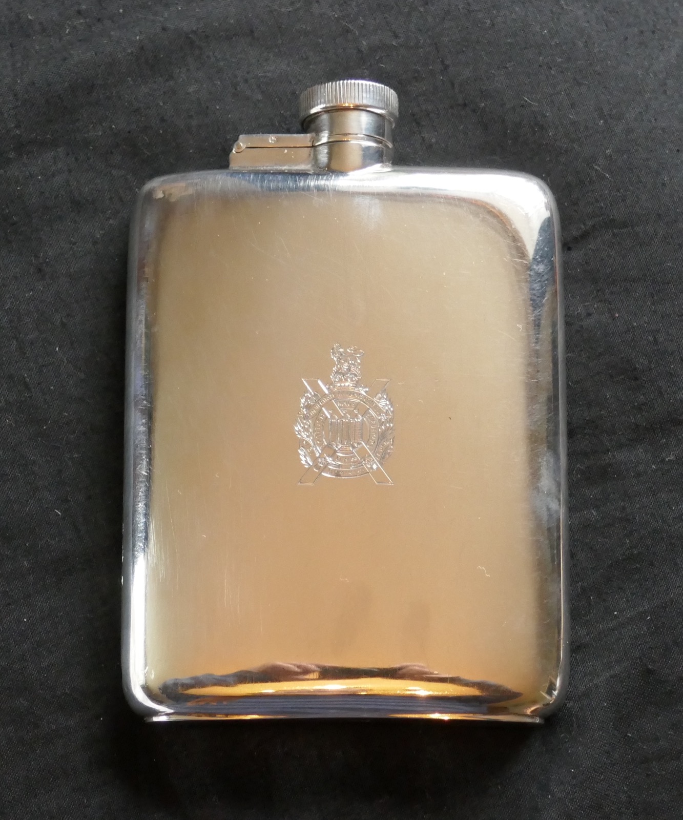 The Kings Own Scottish Borderers Presentation Solid Silver Hip Flask