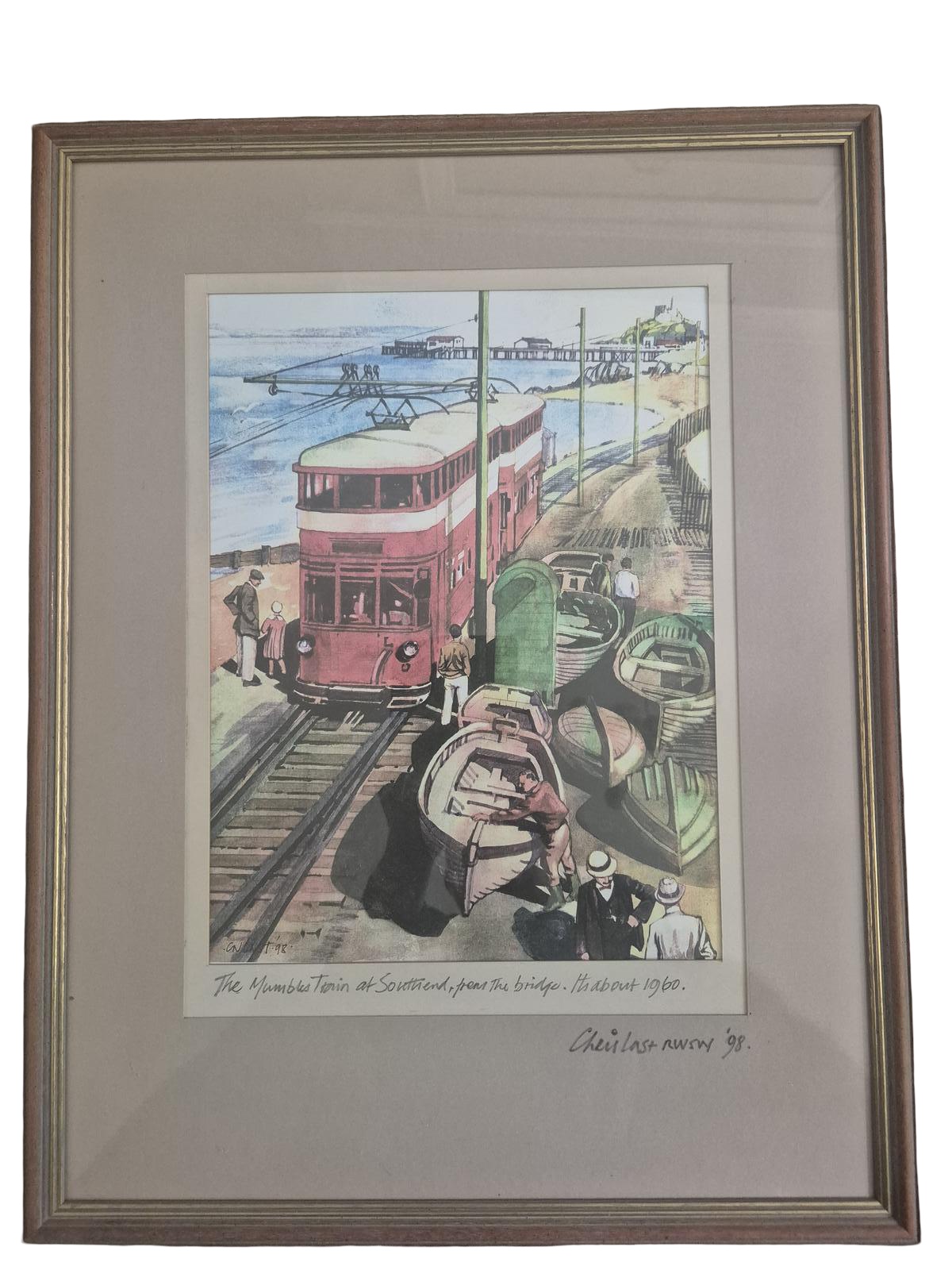 A charming signed print by noted Welsh artist Chris Last, depicting the much-loved Mumbles Railway, affectionately known as the Mumbles Train, as it made its journey along Swansea Bay toward Southend. Rendered in Last’s atmospheric and nostalgic style, the work beautifully captures the character of this iconic coastal railway and the leisurely spirit of a bygone age in Mumbles.