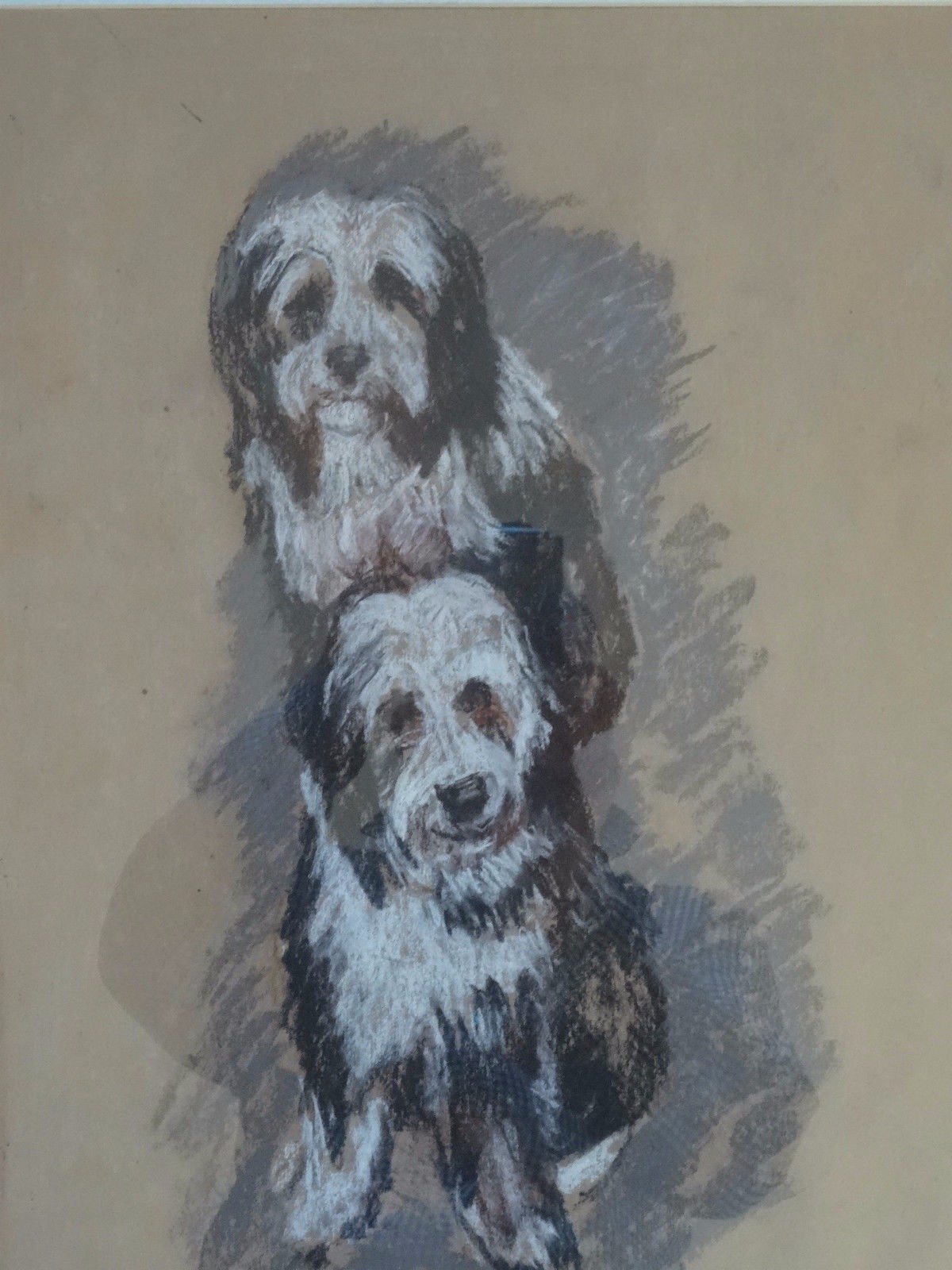 'The Old English Sheepdogs' Original Pastel & Charcoal Portrait Painting