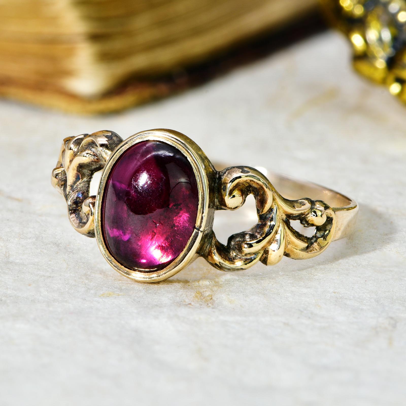 The Ornate Shouldered Red Cabochon Ring