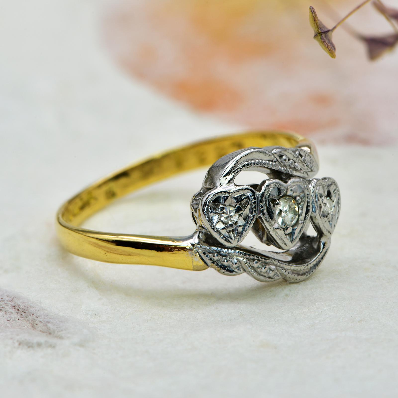 The Vintage 1966 Trio of Hearts Single Cut Diamond Ring