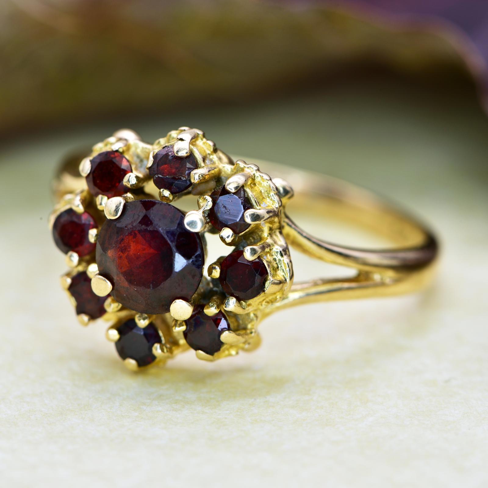 The Vintage 1970 Deep Red Garnet Blooming Ring