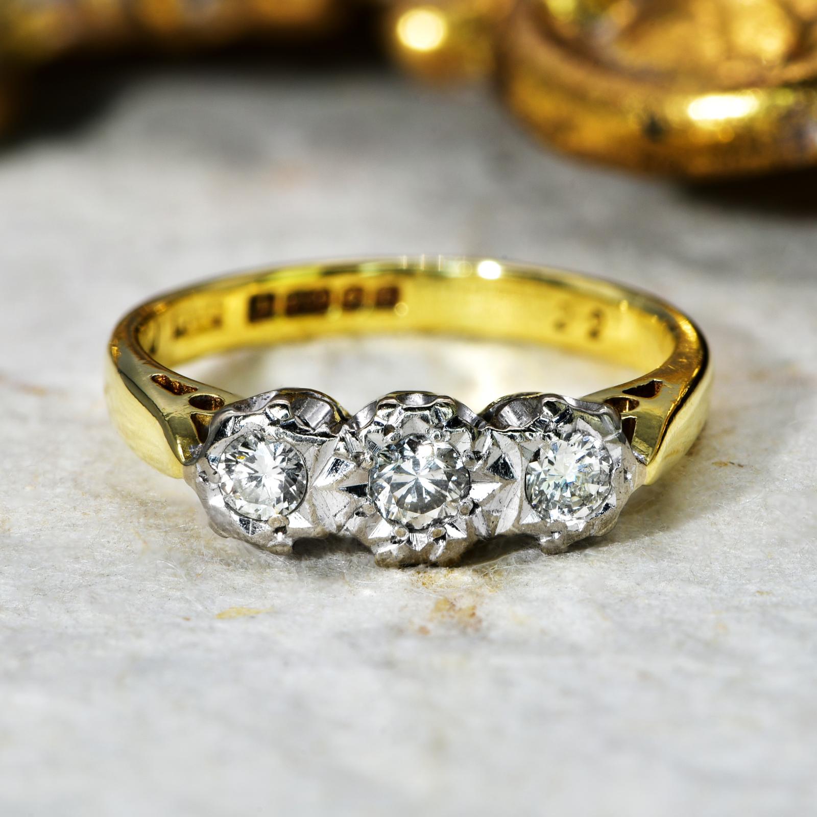 The Vintage 1979 Illusion Set Brilliant Cut Trio of Diamonds Ring