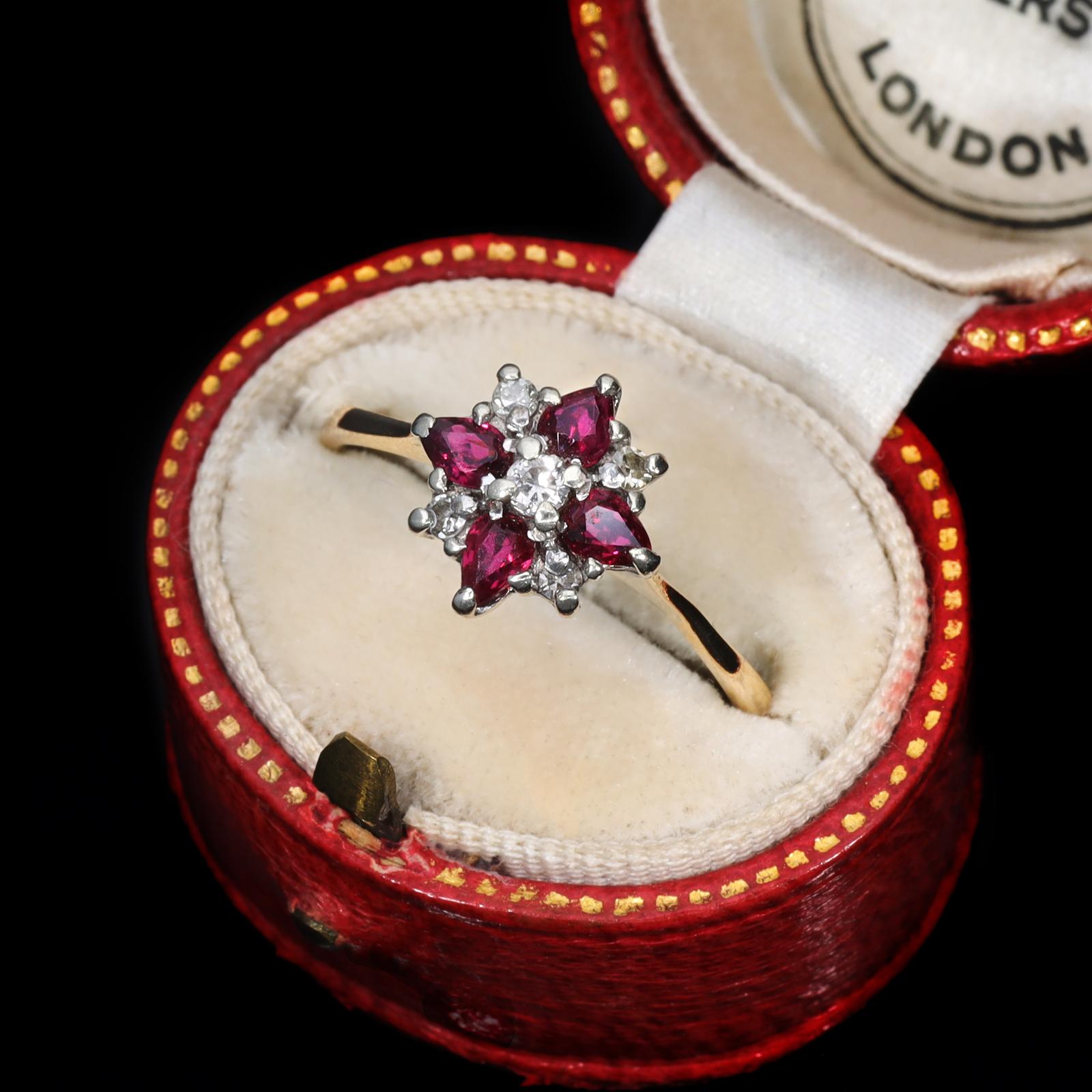 The Vintage 1980 Ruby & Diamond Petal Ring