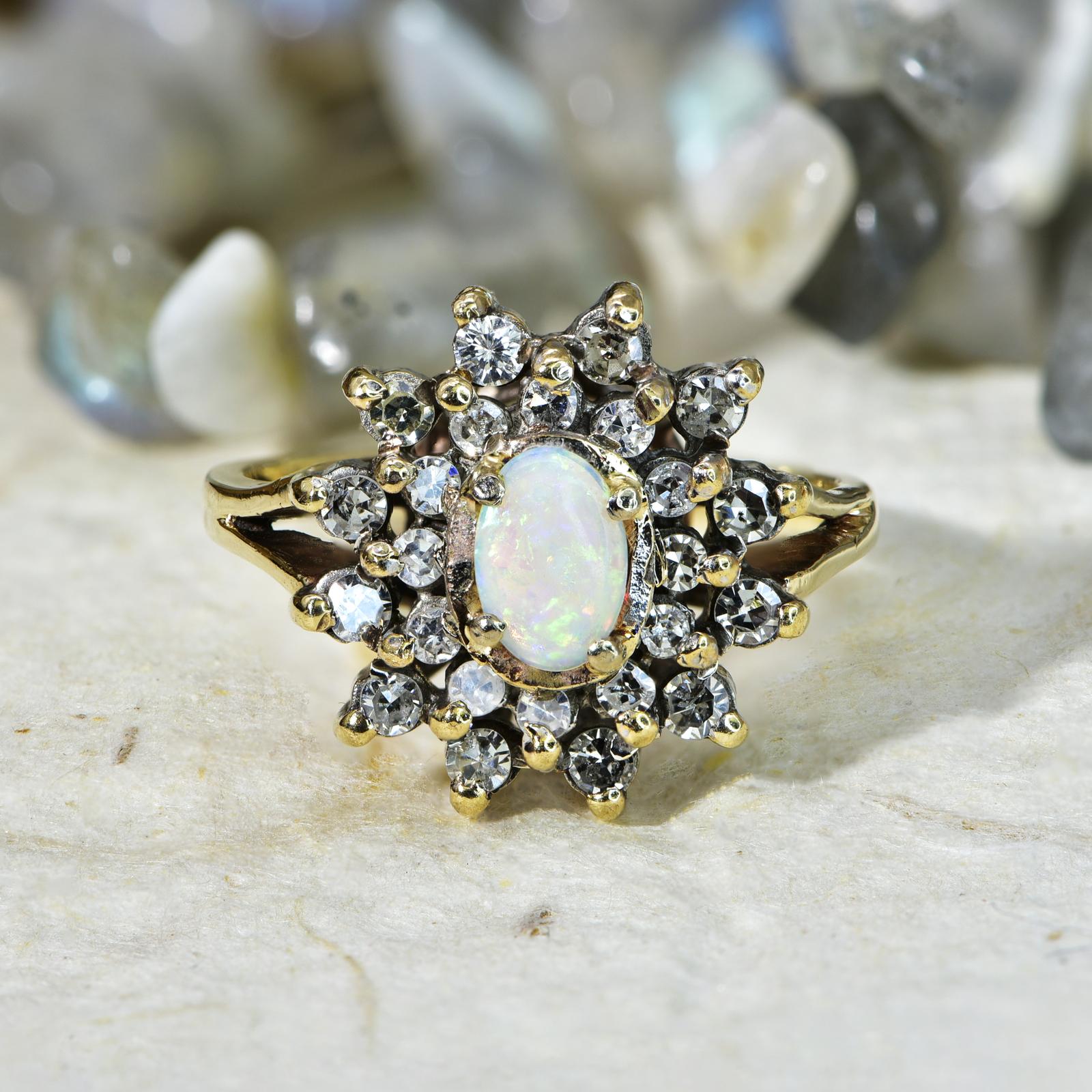 The Vintage 1989 Opal & Single Cut Diamond Ring