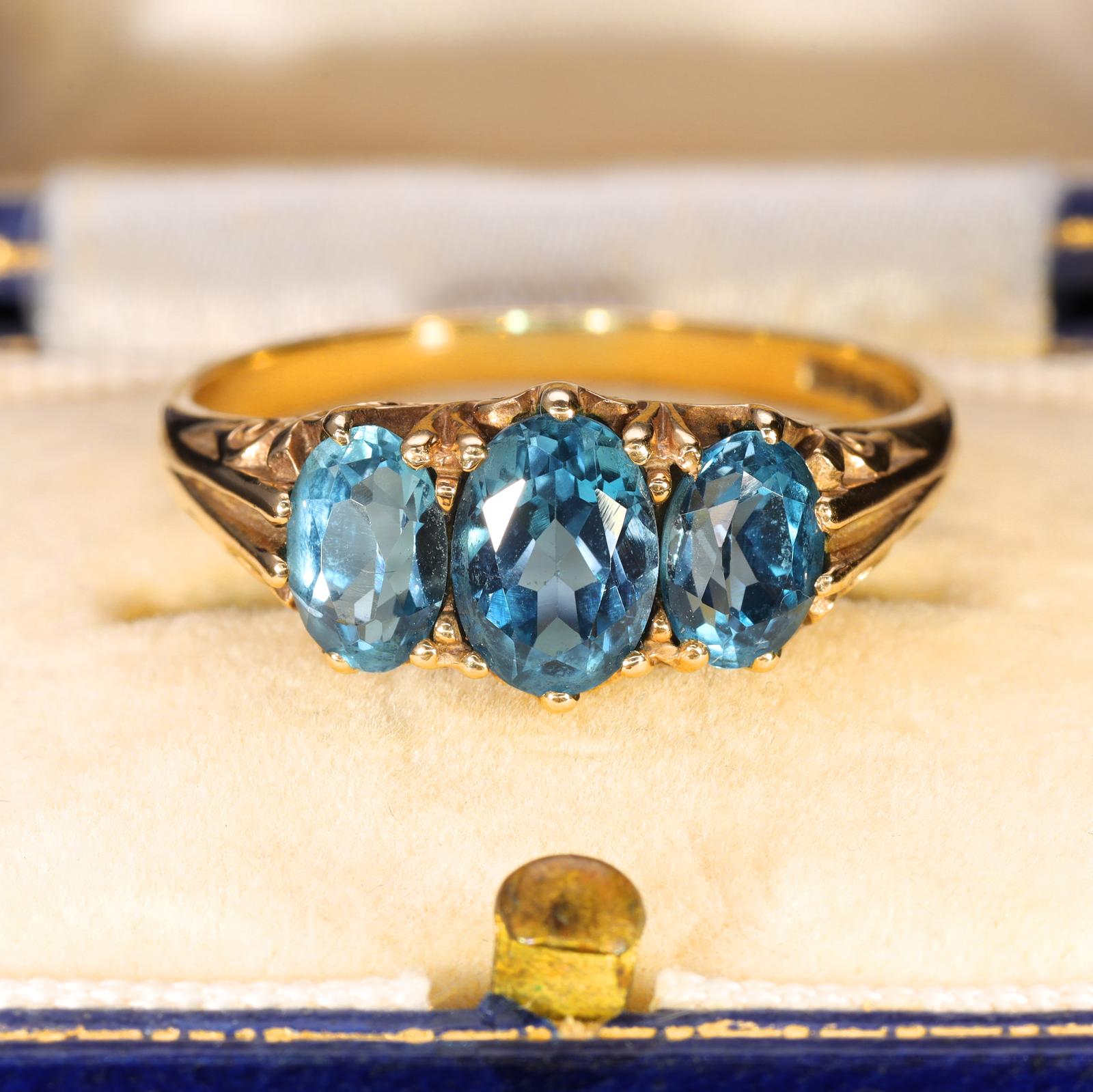 The Vintage 1990 Three Blue Topaz Scroll Ring