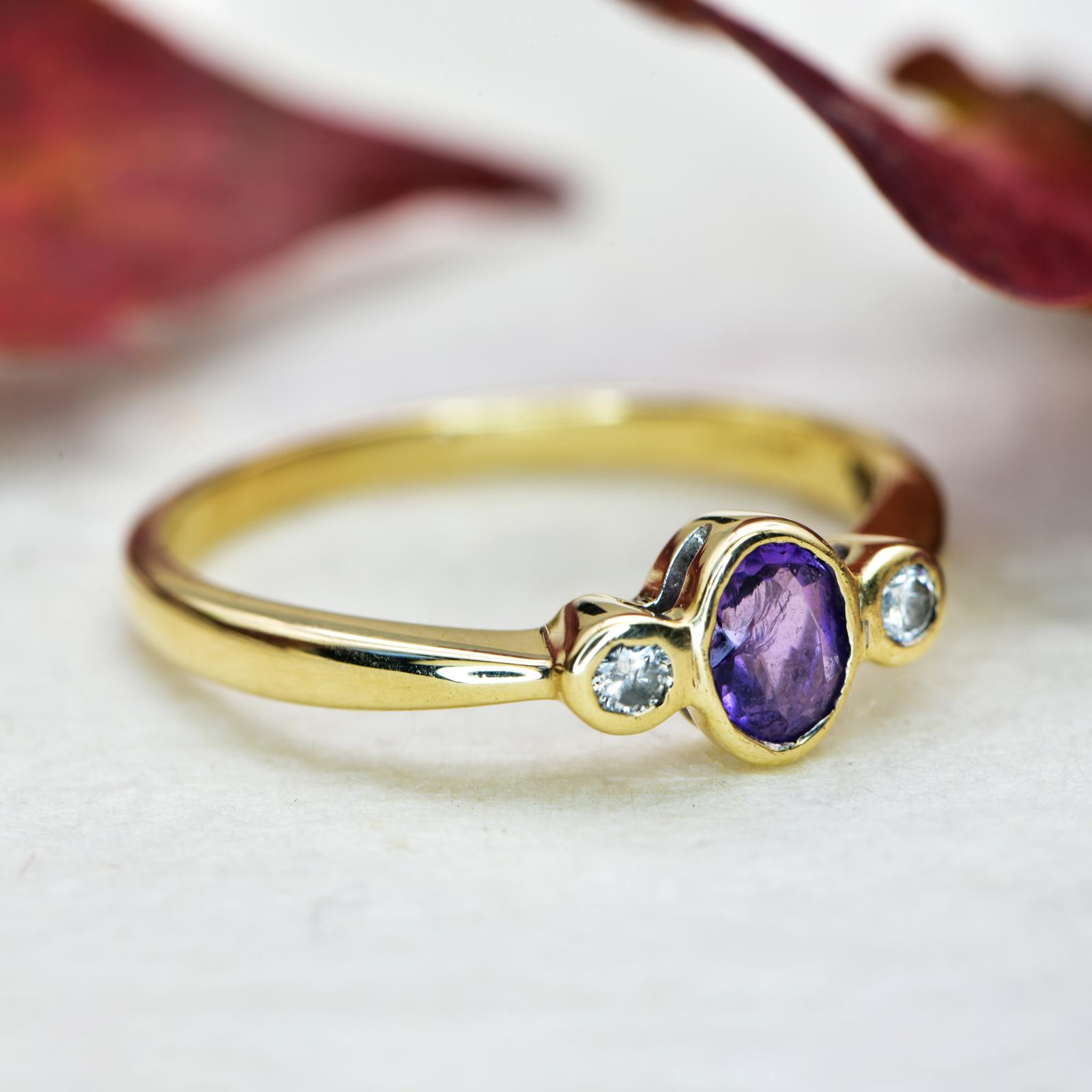 The Vintage 9ct Amethyst & Brilliant Cut Diamond Ring