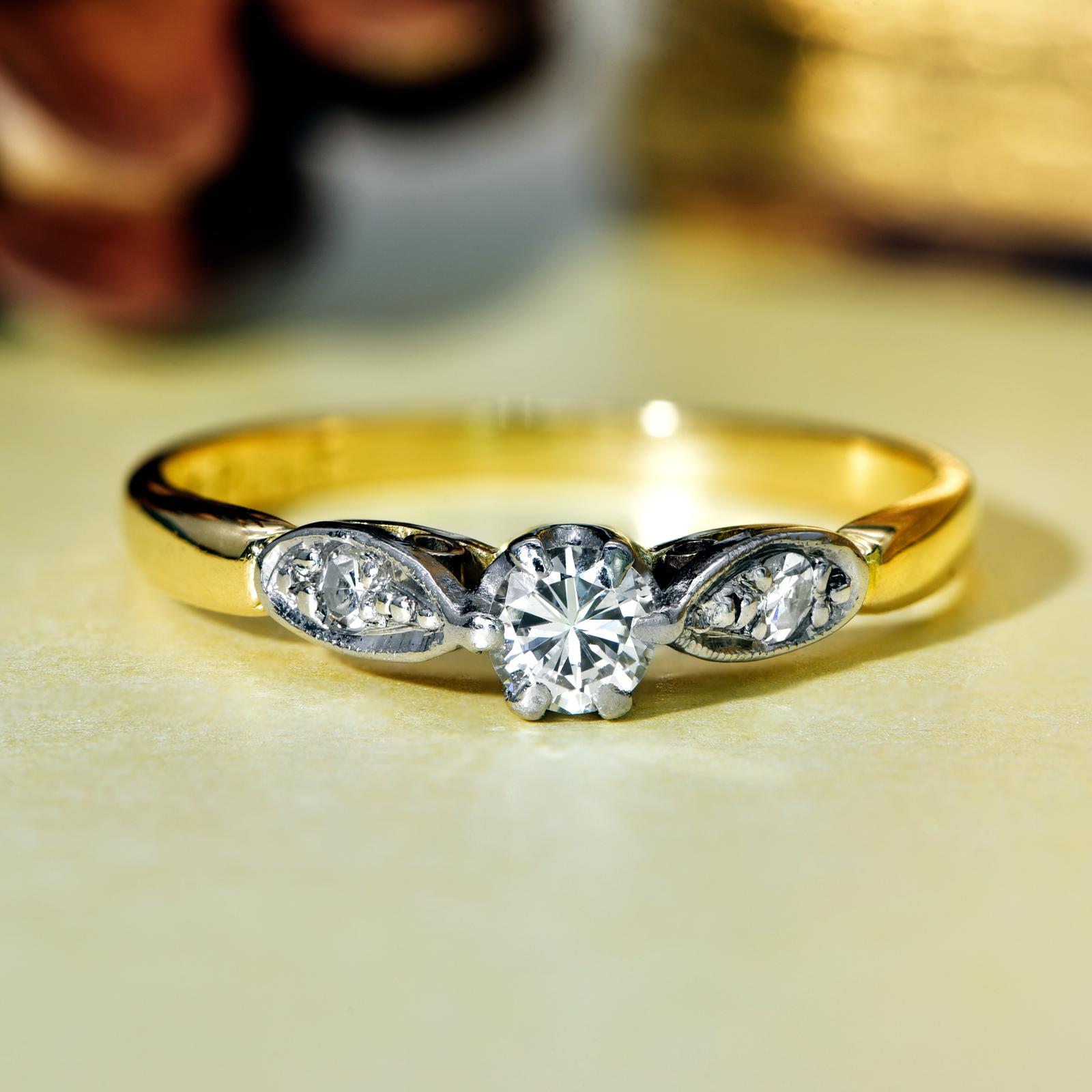 The Vintage Brilliant Cut Diamond Leafy Shoulders Ring