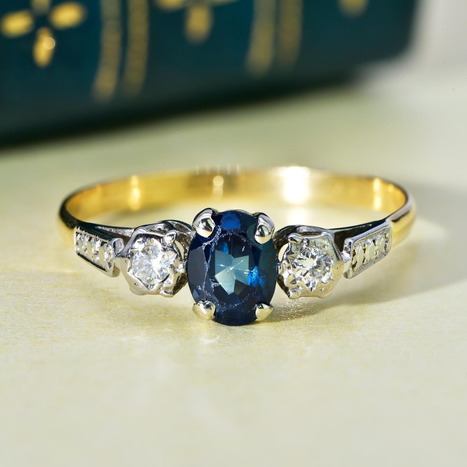 The Vintage Brilliant Cut Diamond & Sapphire Ring