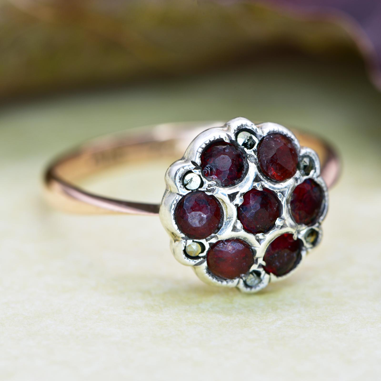The Vintage Circular Seven Garnet Cluster Ring