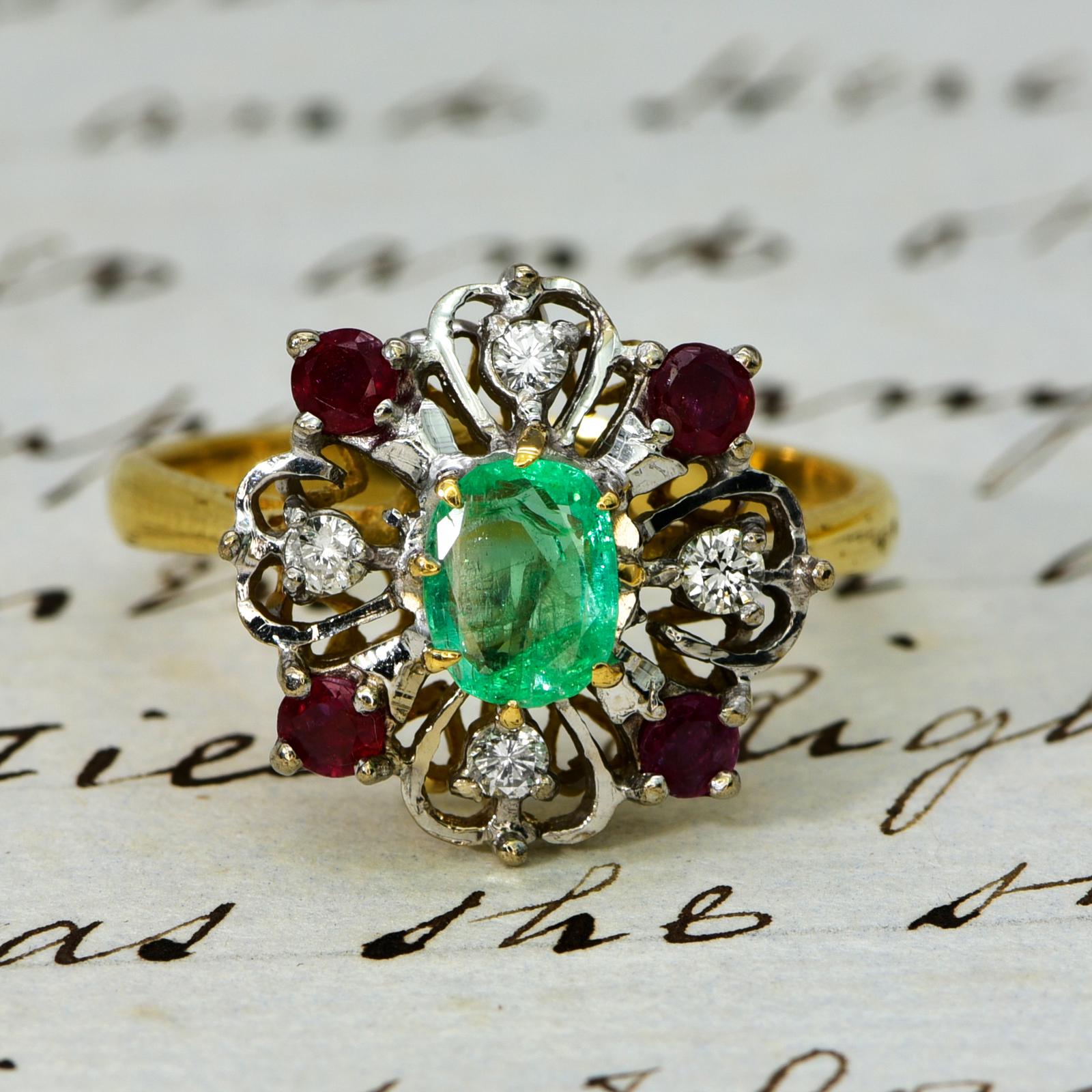 The Vintage Emerald, Ruby & Diamond Hearts Ring