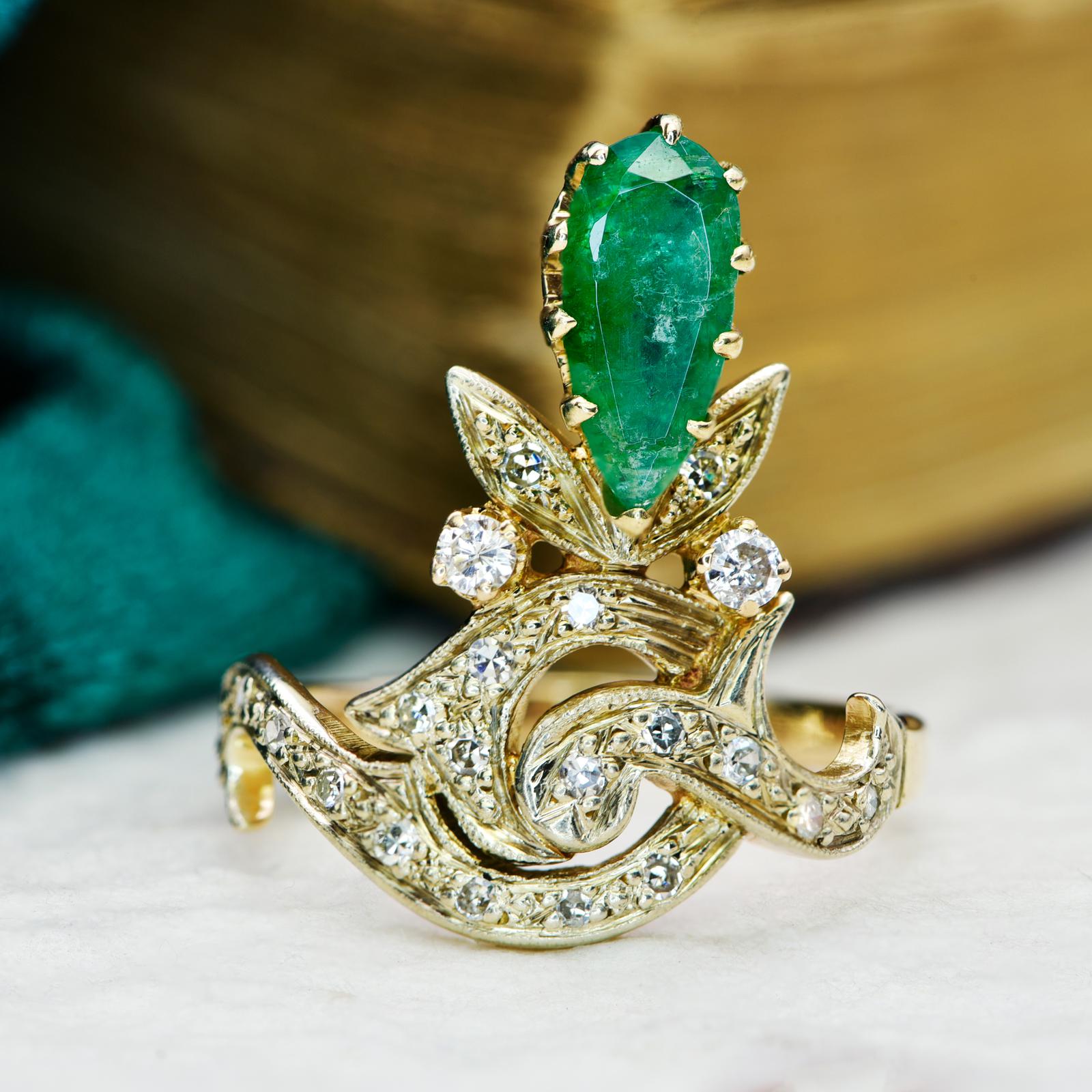 The Vintage Emerald, Single & Brilliant Cut Diamond Ring