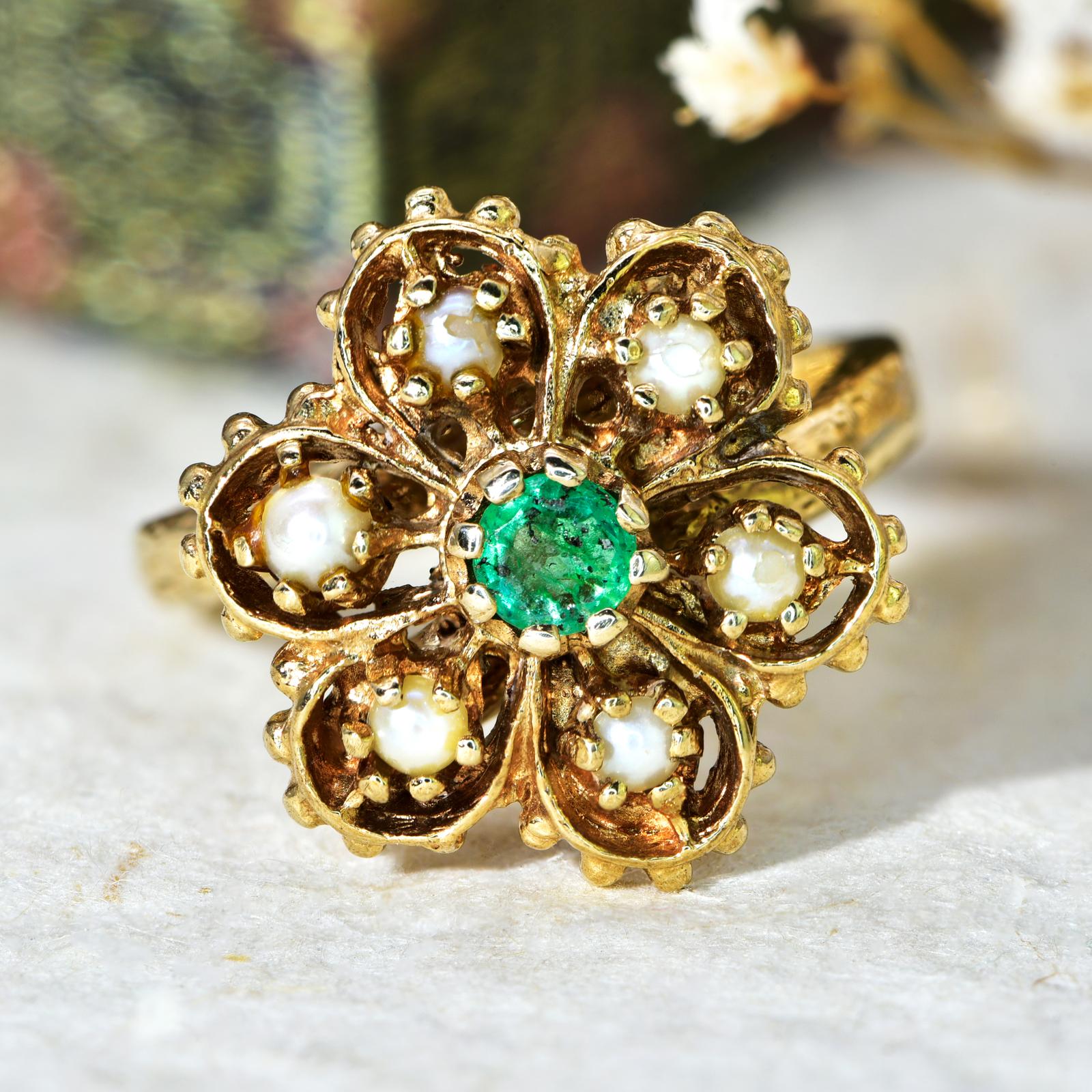 The Vintage Emerald & Split Pearl Elaborate Floral Ring