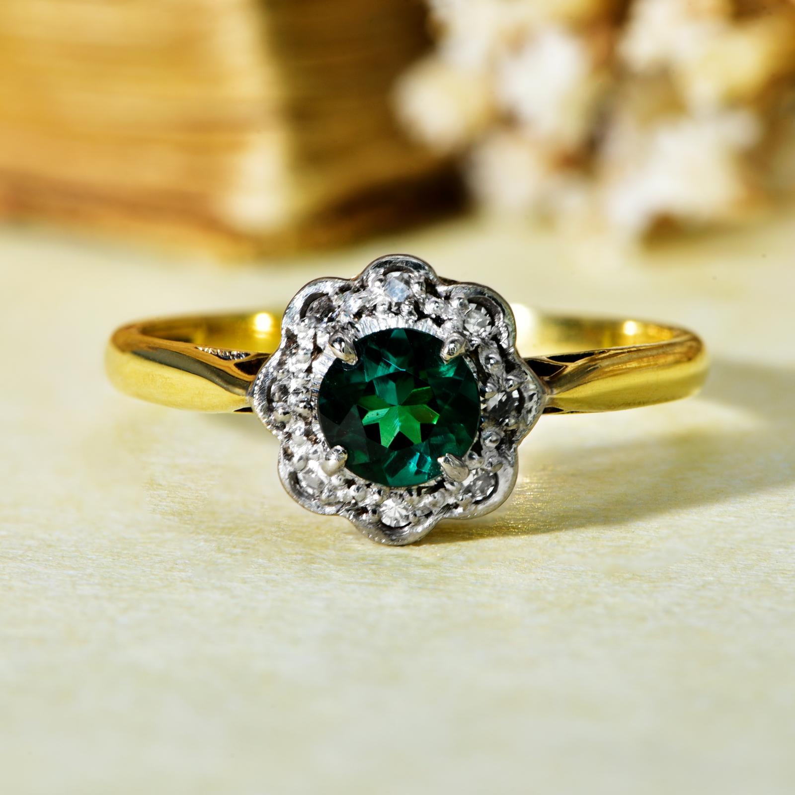 The Vintage Green Tourmaline and Diamond Daisy Ring