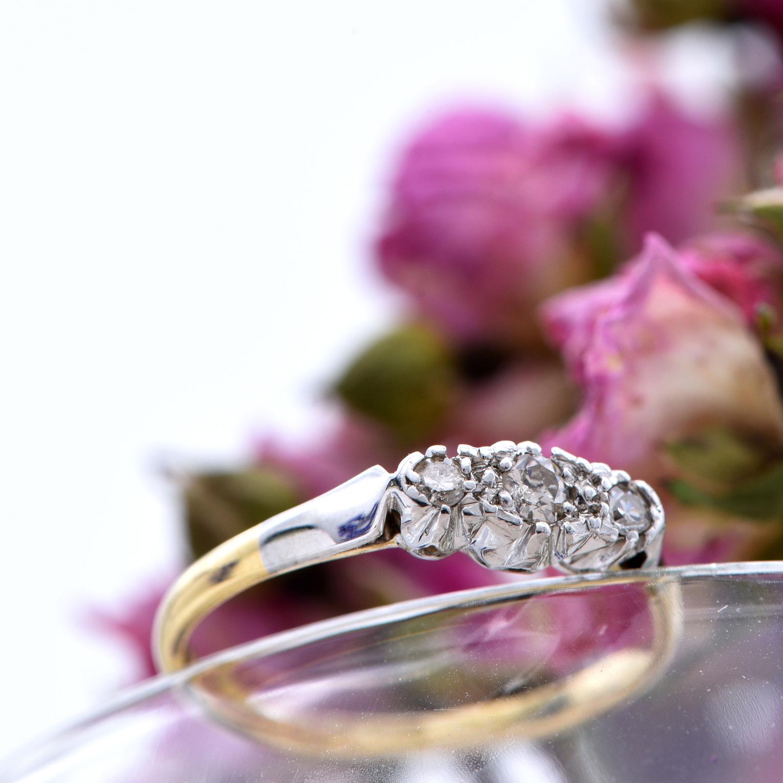 The Vintage Mirror Shoulder Three Diamond Ring