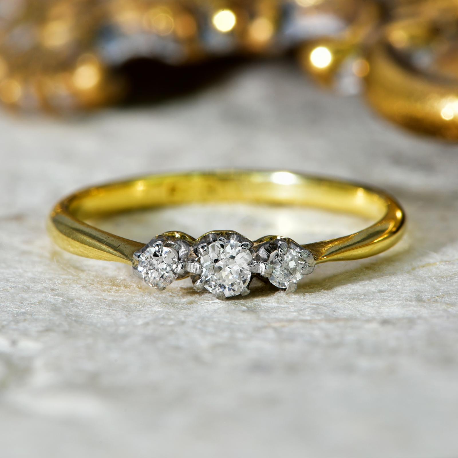The Vintage Three Brilliant Cut Diamond Dainty Ring