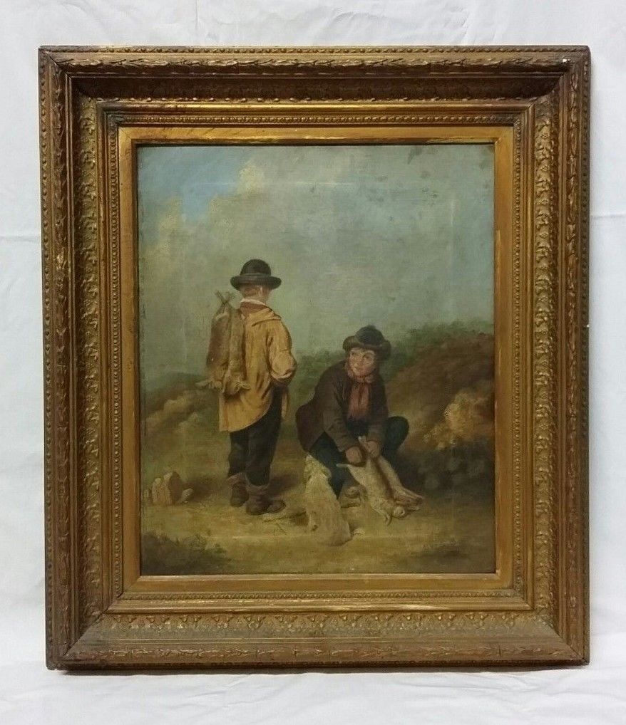 'The Warreners' Enchanting 19th Century Oil on Canvas Painting