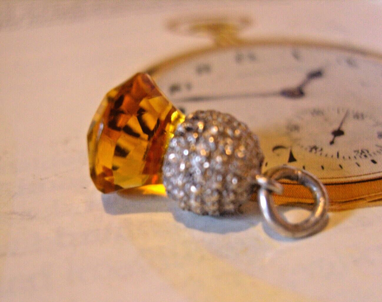 Thistle Fob Victorian Silver & Vivid Citrine Pocket Watch Chain 1890s Dainty Fob
