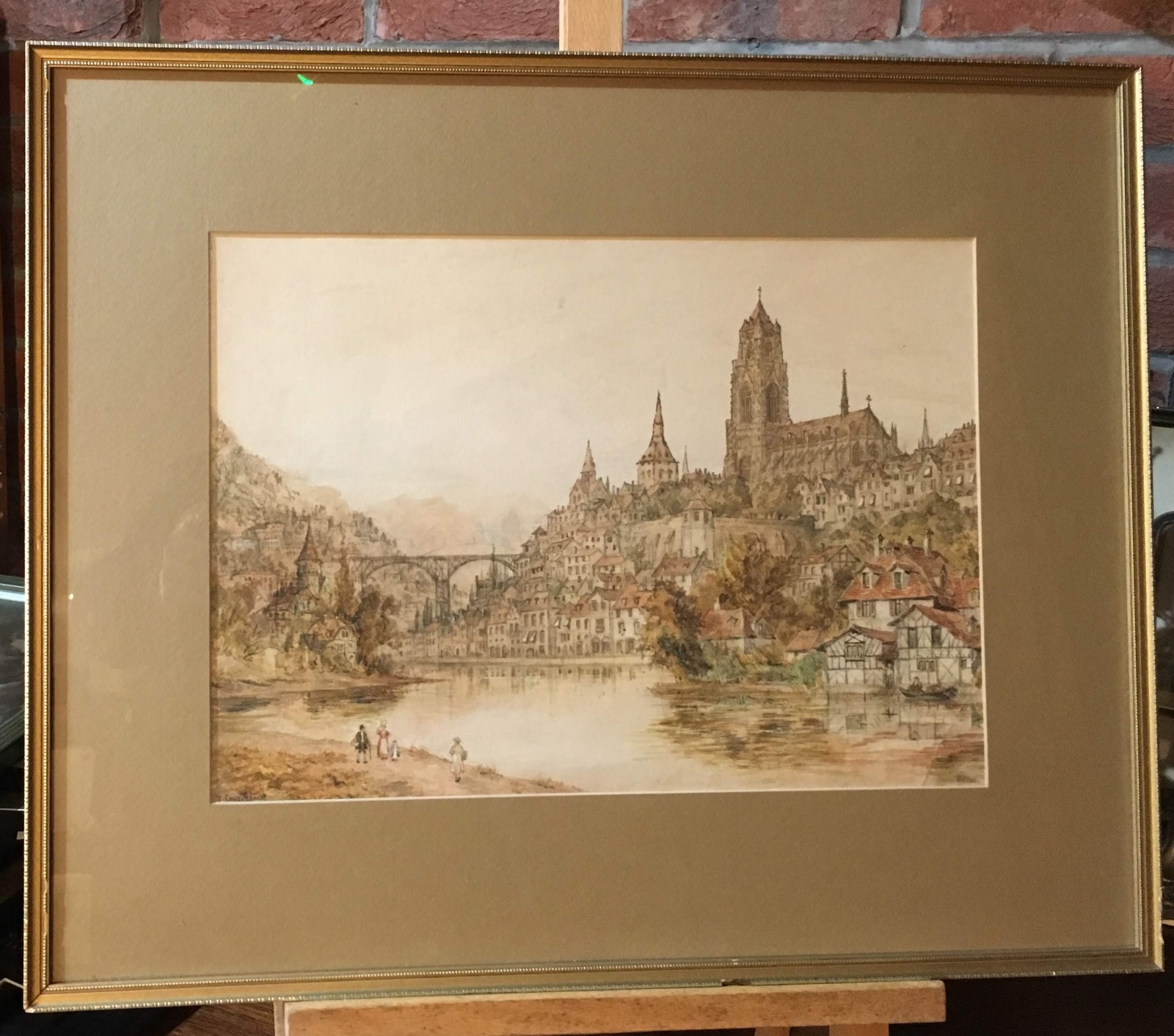 Thomas Cowlishaw Berne Switzerland a Fine Antique Townscape Painting C.1895