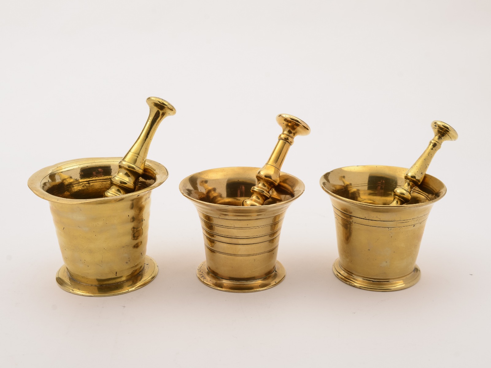 Three Brass 19th Century Pestle & Mortars