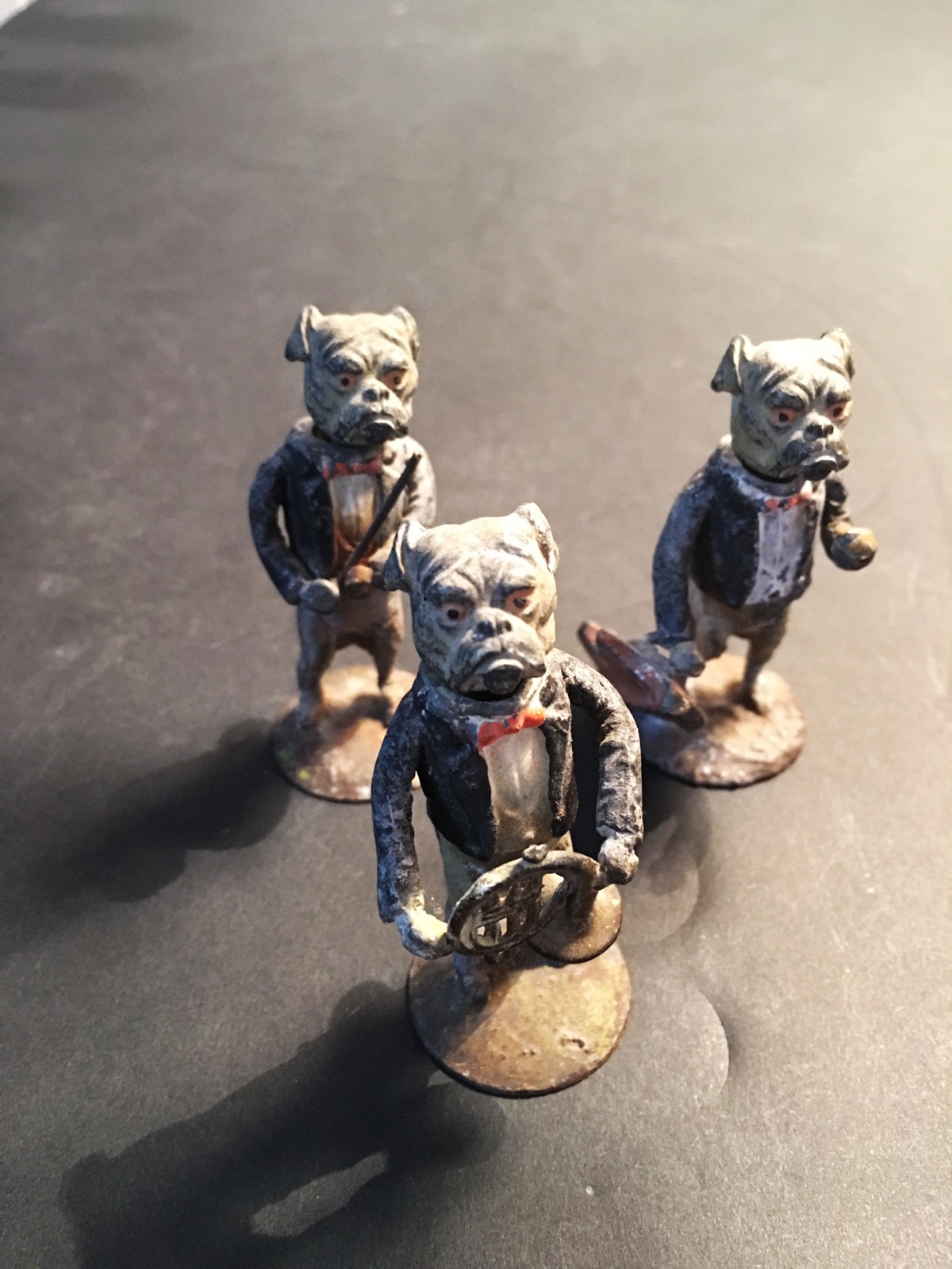 Three Early 20th Century Painted Lead Nodding Bulldog Figures