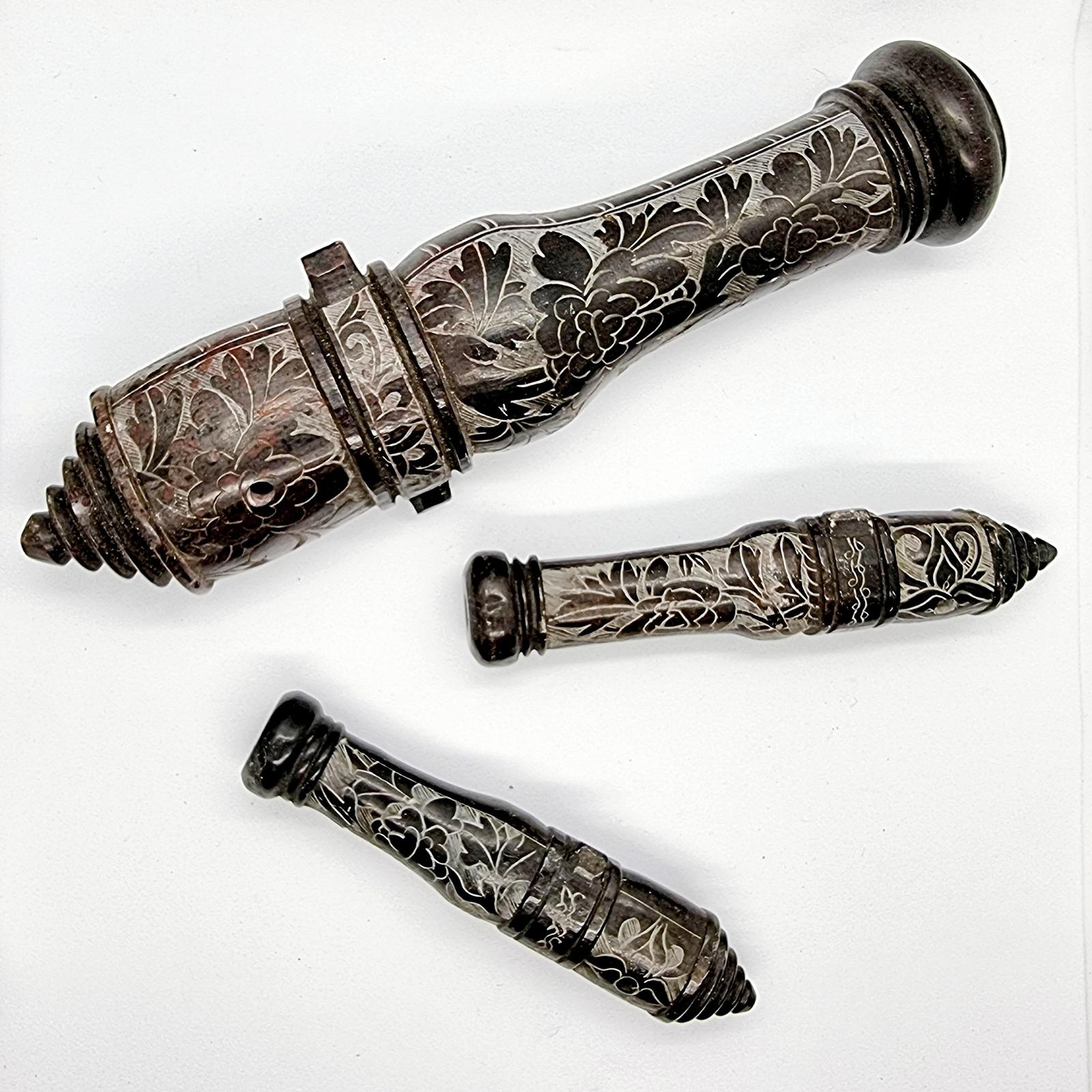 Three Floral Carved Soapstone Chinese Cannons