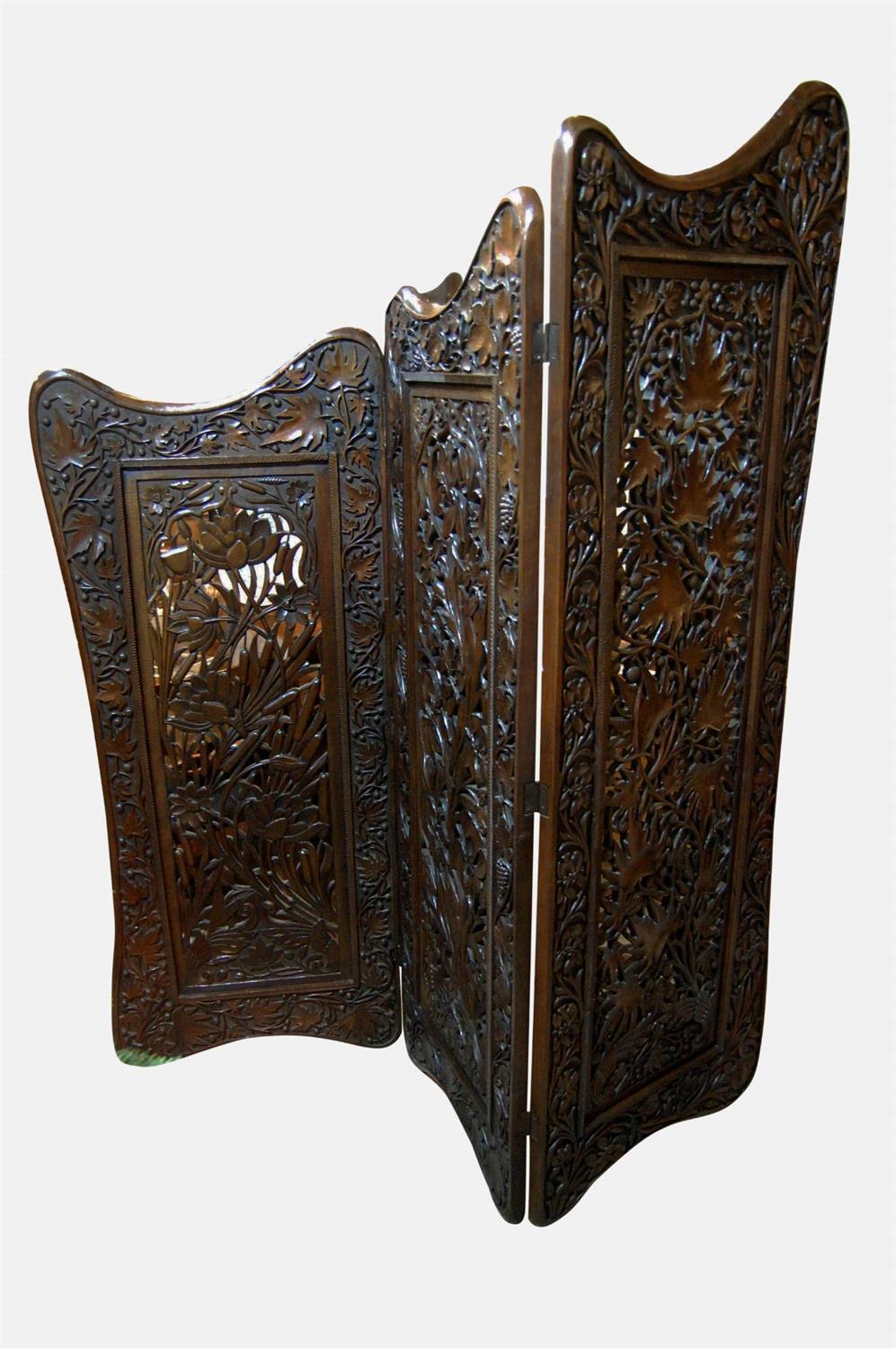 Three Part Carved Walnut Screen c.1860 (1 of 1)