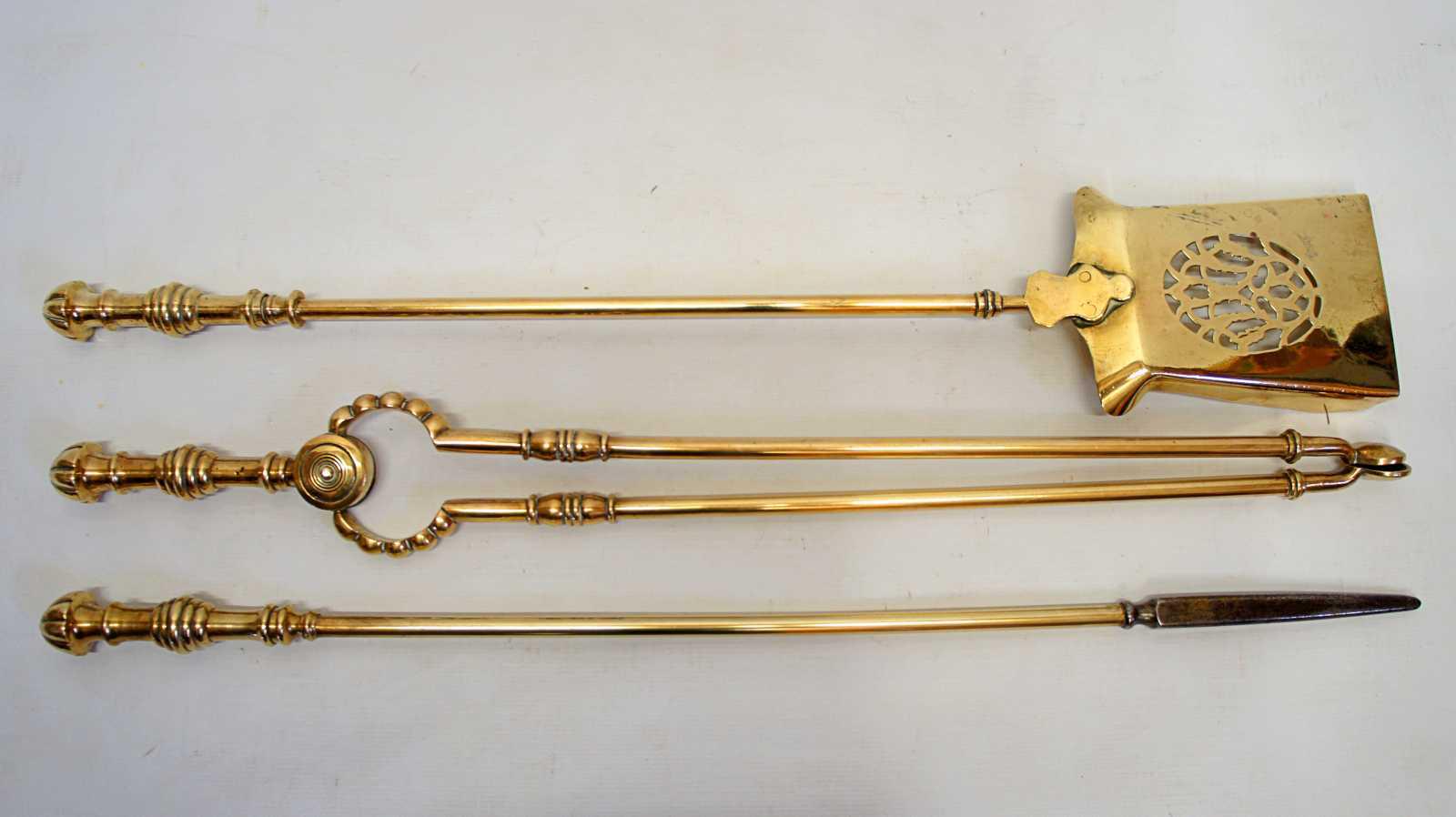 Three Piece Victorian 28" Brass Fire Irons or Companion Set