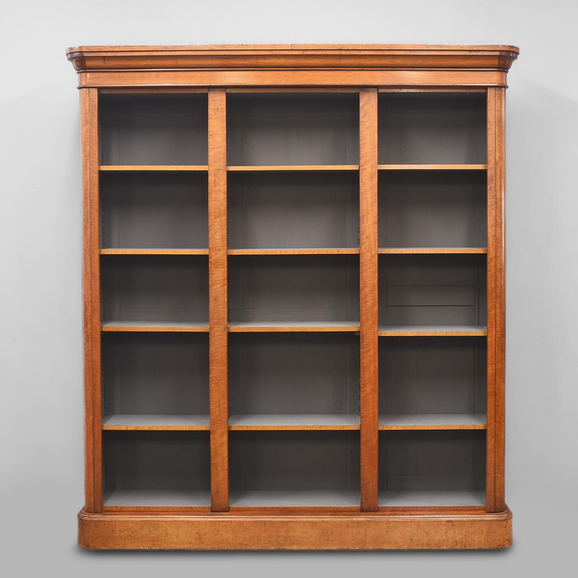 Three-section Victorian Figured Mahogany Open Bookcase (1 of 6)