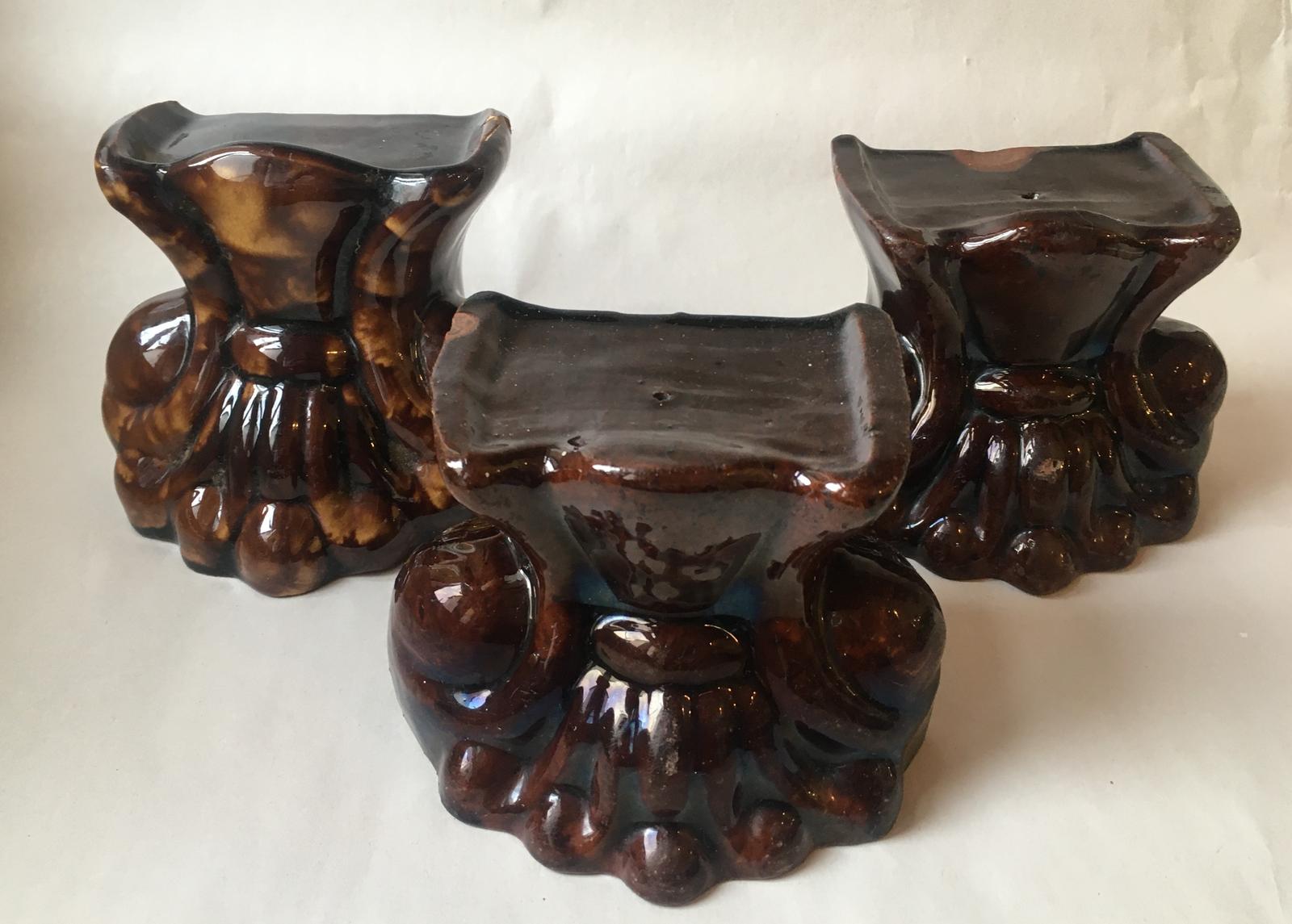 Three Treacle Glazed Pottery Stands