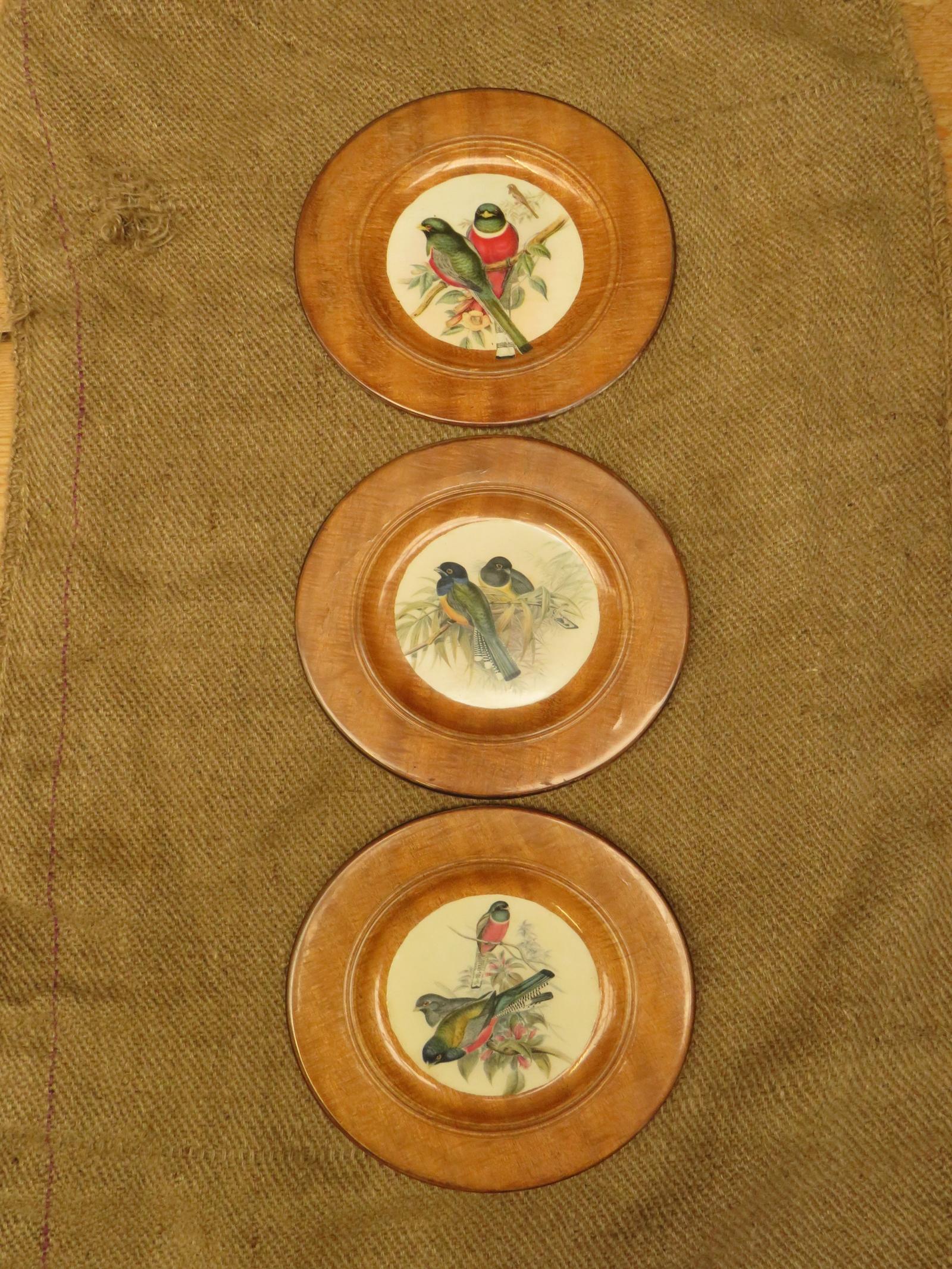 Three Vintage 'mahoganite' Wooden Bird Plates