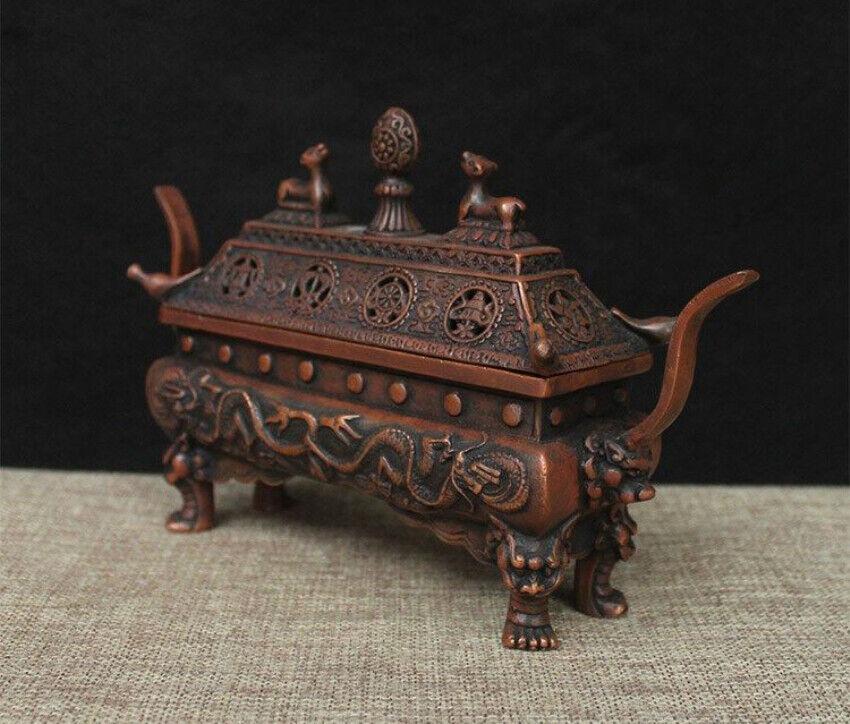 Tibetan Buddhism Red Bronze Dragon Incense Burners Censer