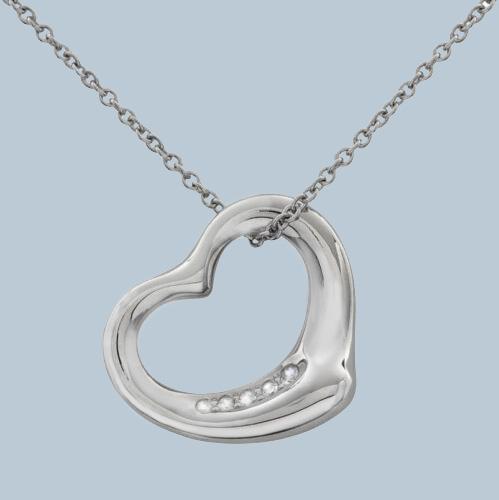 Tiffany Diamond Platinum Heart Necklace Elsa Peretti Pendant and Chain with Box