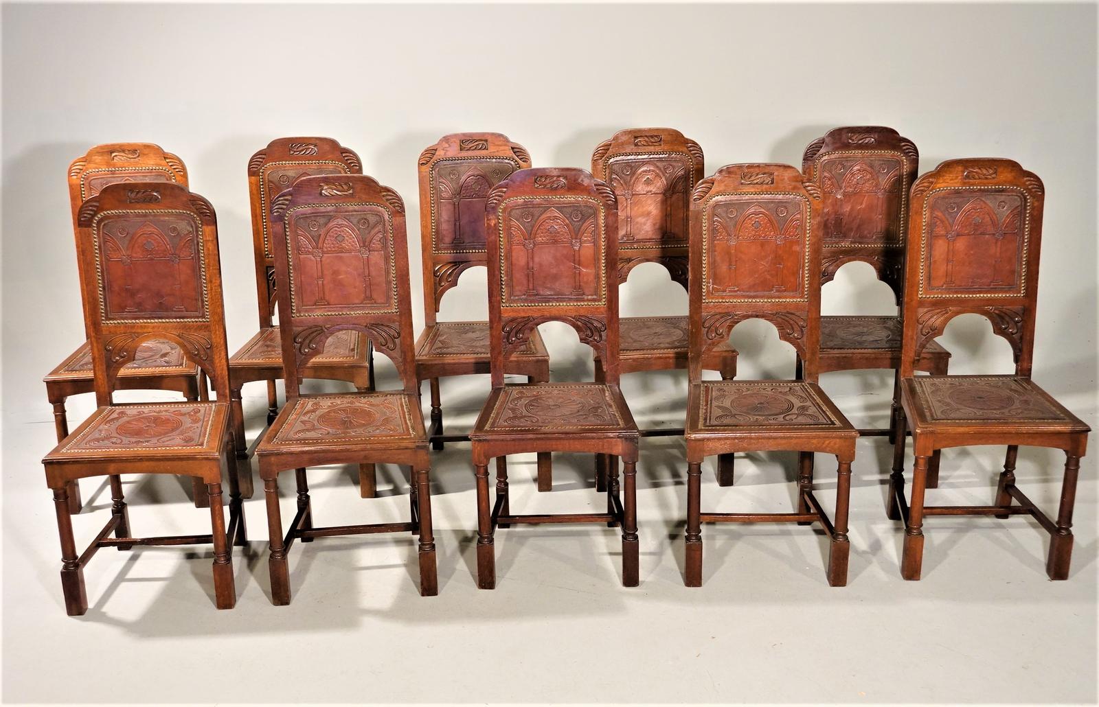Tightly Designed Set of 10 Early 20th Century Oak Framed Chairs