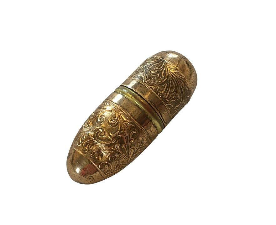 Tiny Ornate Gilt Metal Sewing Notion Thread and Needle Case