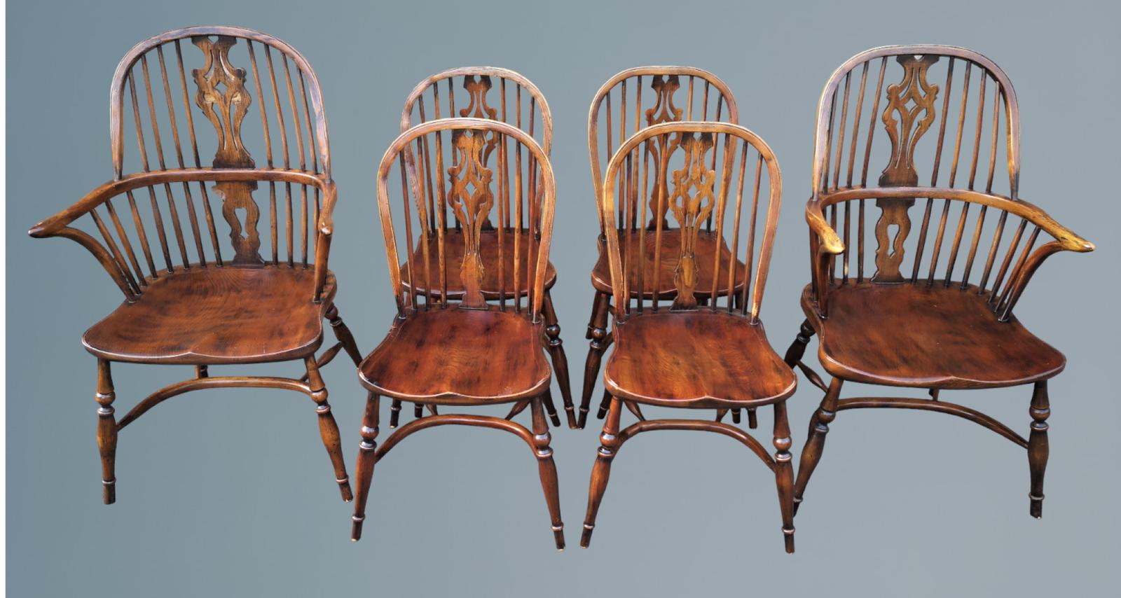 Titchmarsh Goodwin Set of Six (4+2) Oak Windsor Chairs