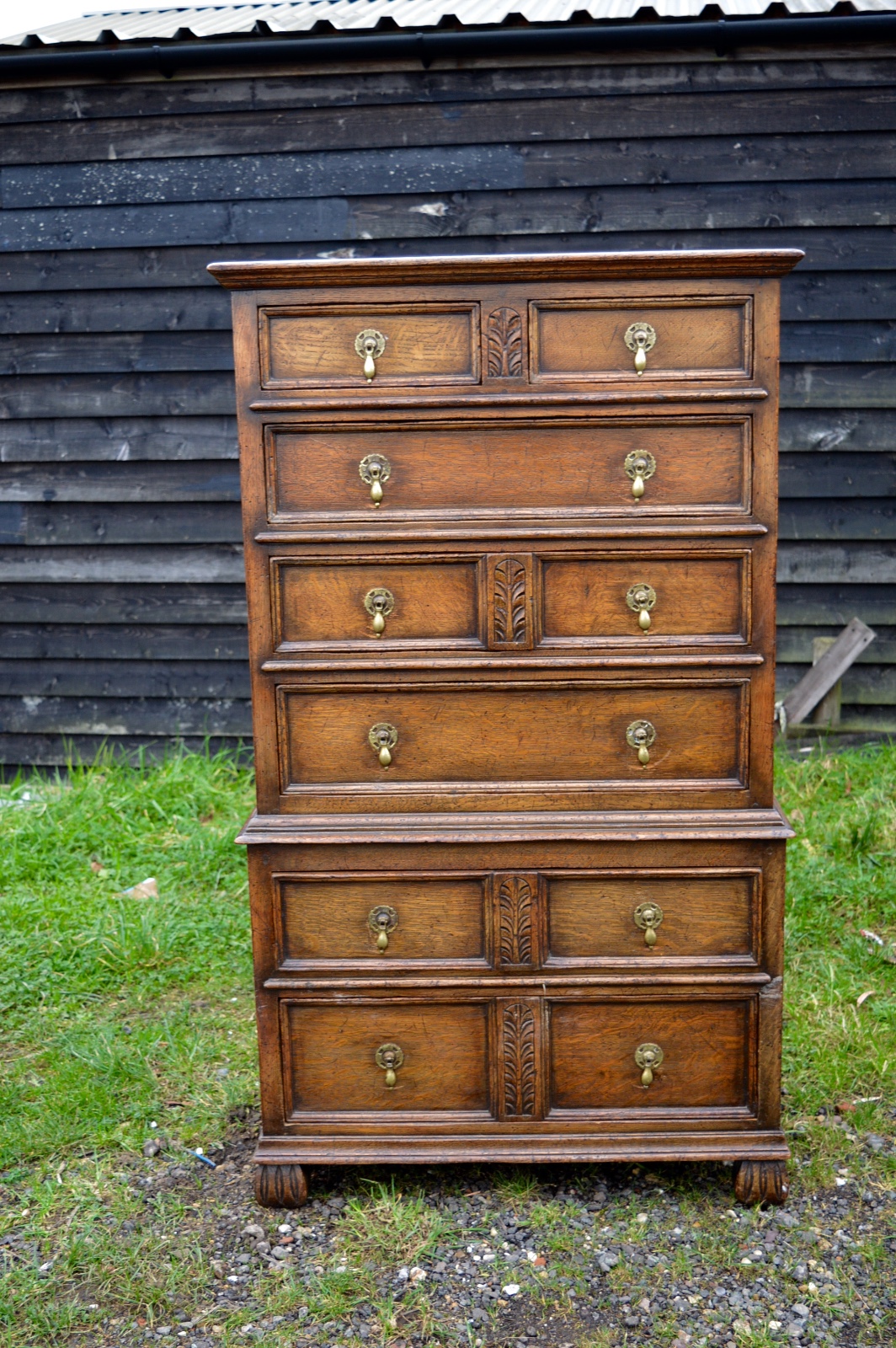 Titchmarsh Goodwin Style Antique Carved Oak Tallboy Chest on Chest