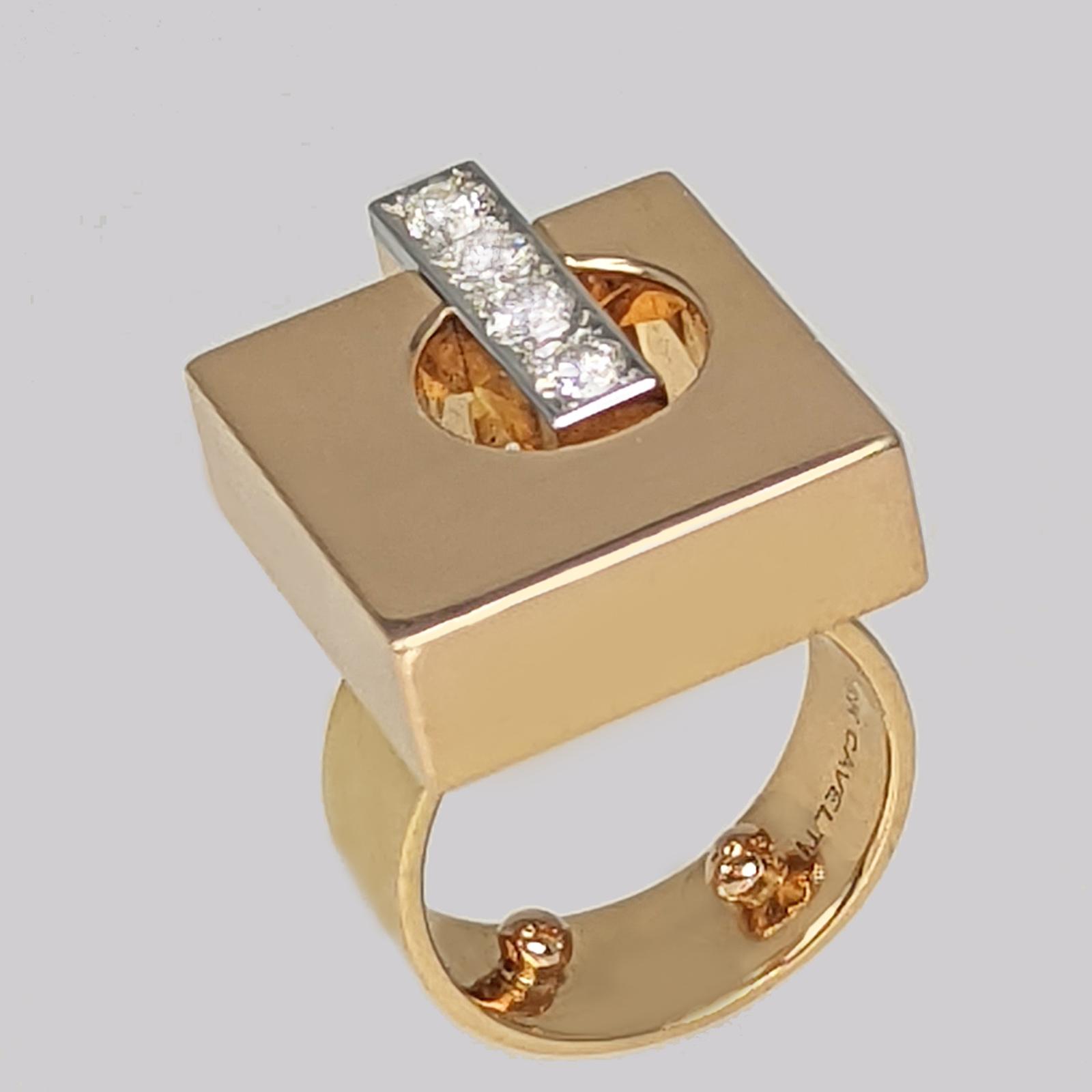 Toni Cavelti Modernist Ring 0.5ct Diamond 18ct Gold 1960s Geometric Vintage Ring