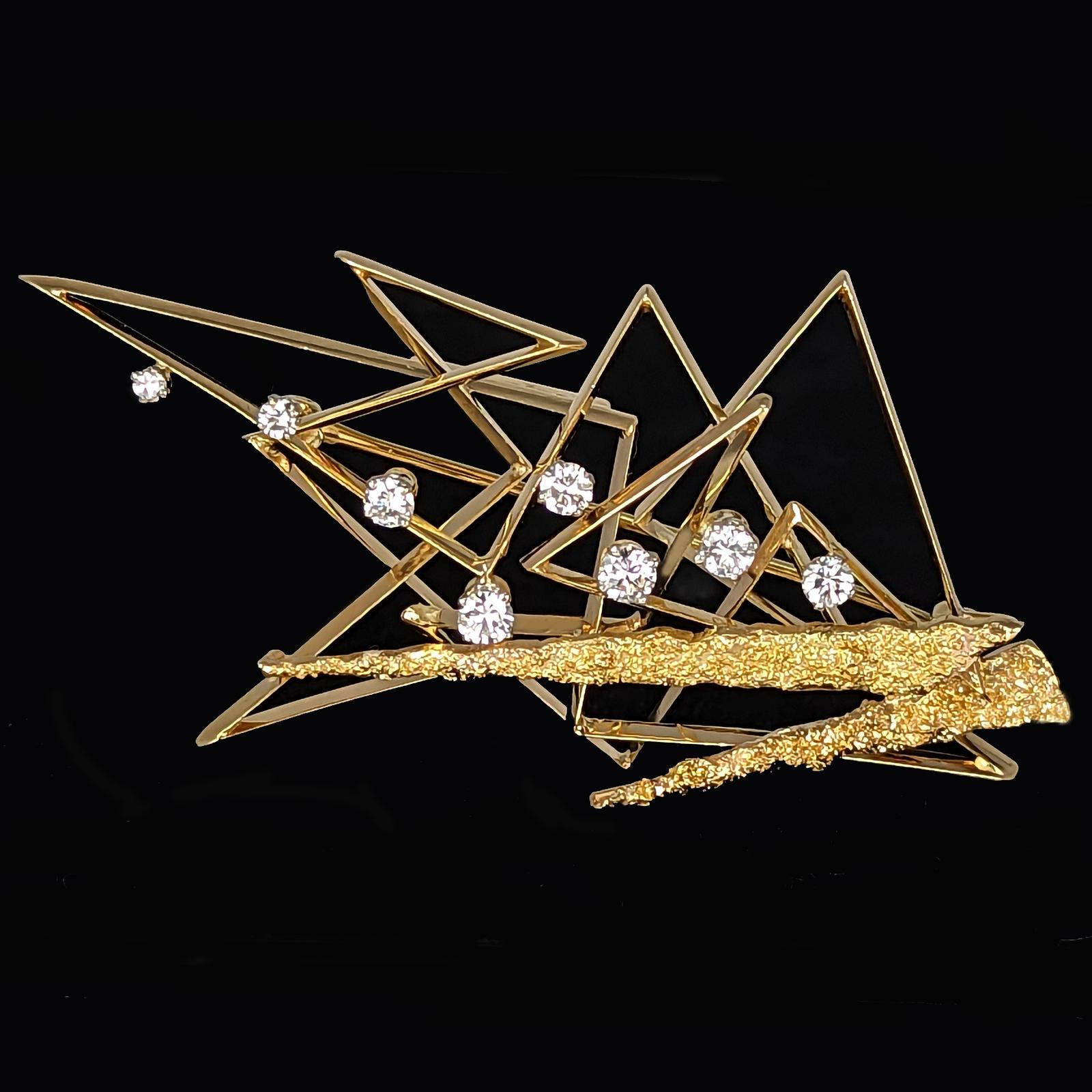 Tony Cavelti Diamond Brooch 18ct Gold Modernist 1960s Brooch 2.6" x 1.26" 12 Grams