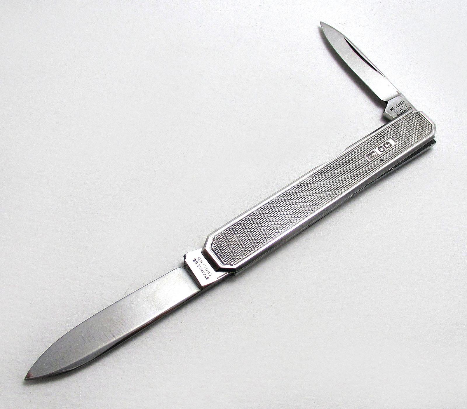 Top Qualilty Sheffield WWII era 1942 Vintage Sterling Silver Stainless Steel, Pocket Fruit Pen Knife Folding Penknife. Art Deco.