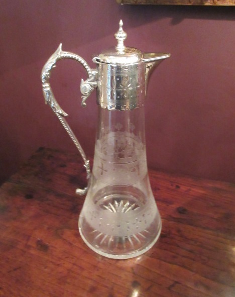 Top Quality Antique Cut & Etched Silvered Claret Jug