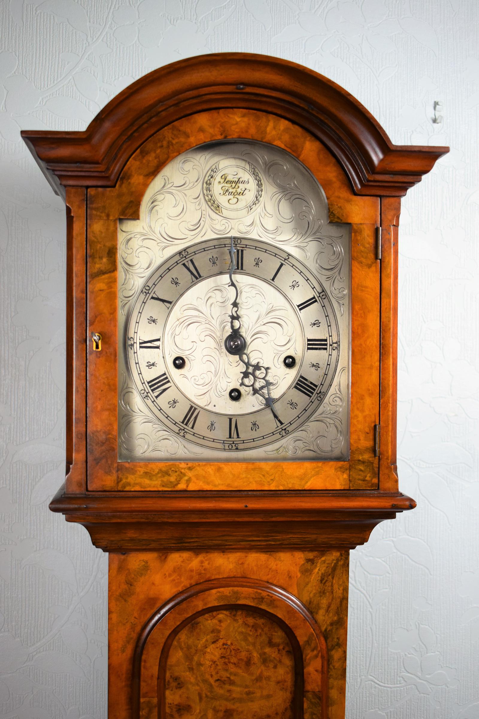 Top Quality Burr Walnut Grandmother or Dwarf Grandfather Longcase Clock with EMBEE Peerless 8 Day Westminster Chiming Musial Clock (1 of 9)